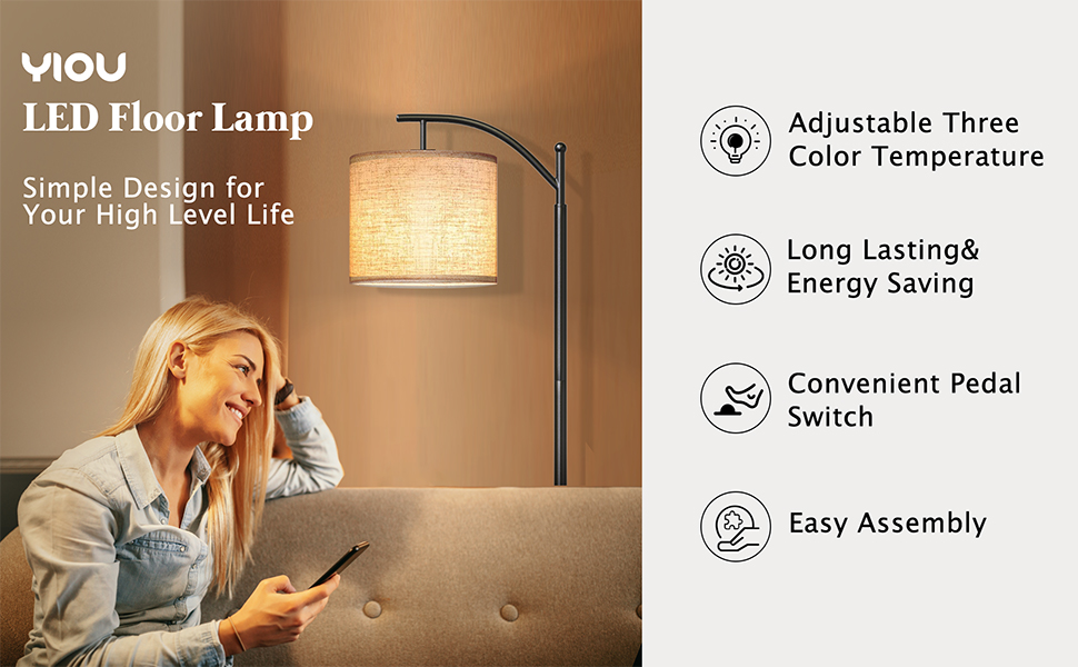 Adjustable Color Temperature & Eye Protection: YIOU floor lamp with 3 color temperature 3000K, 4000K and 5000K meets your different daily needs. The fabric lamp shade and anti-blue light bulb allow for a soft and comfortable light to avoid dazzling and protect your eyes well.