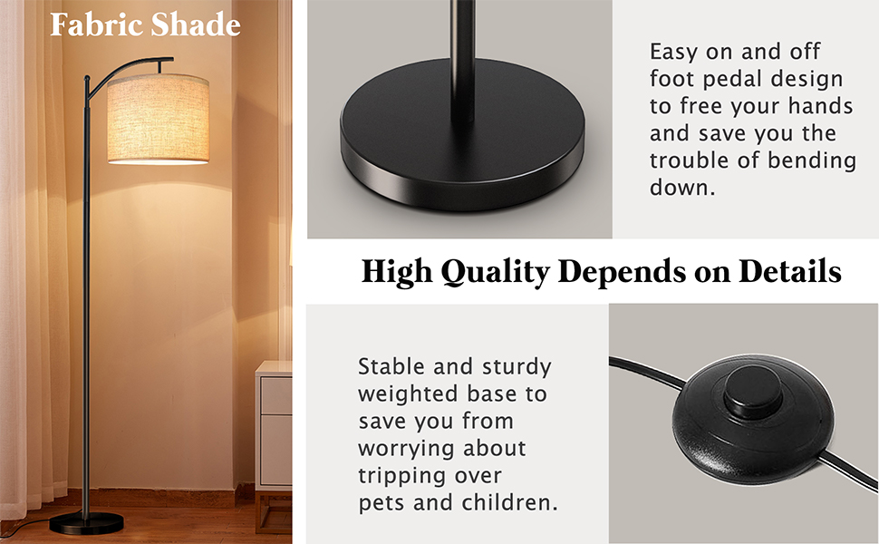 Safty for Use: We designed the modern floor lamp with your safety in mind, its well weighted, high stability base make it safe enough to be placed around your children and pets without being knocked over.
