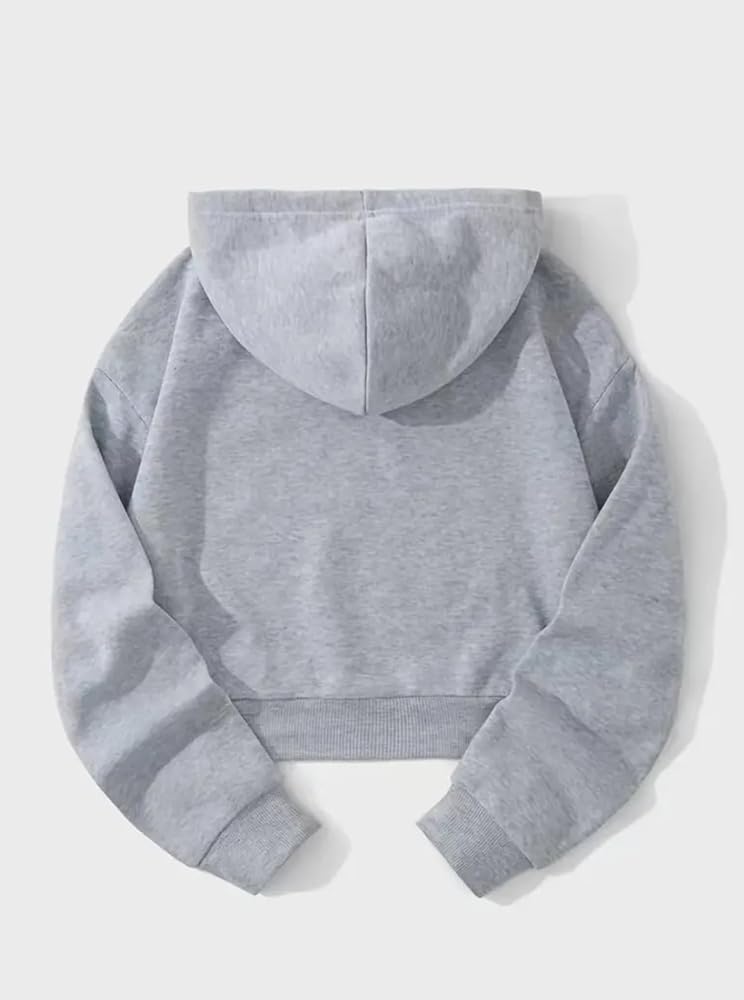 Hilinker Long Sleeve Drop Shoulder Cropped Sweatshirt for Teen Girls - White Crop Top Hoodie