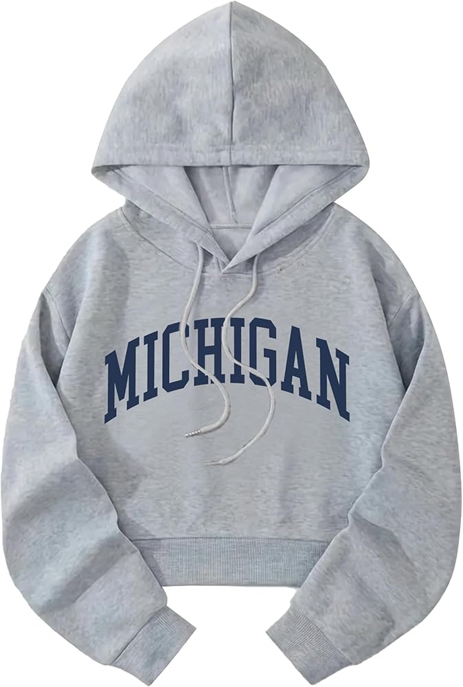 Womens Brooklyn Letter Graphic Long Sleeve Cropped Sweatshirt Hooded Pullover