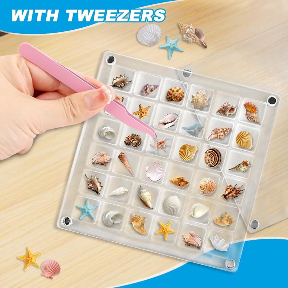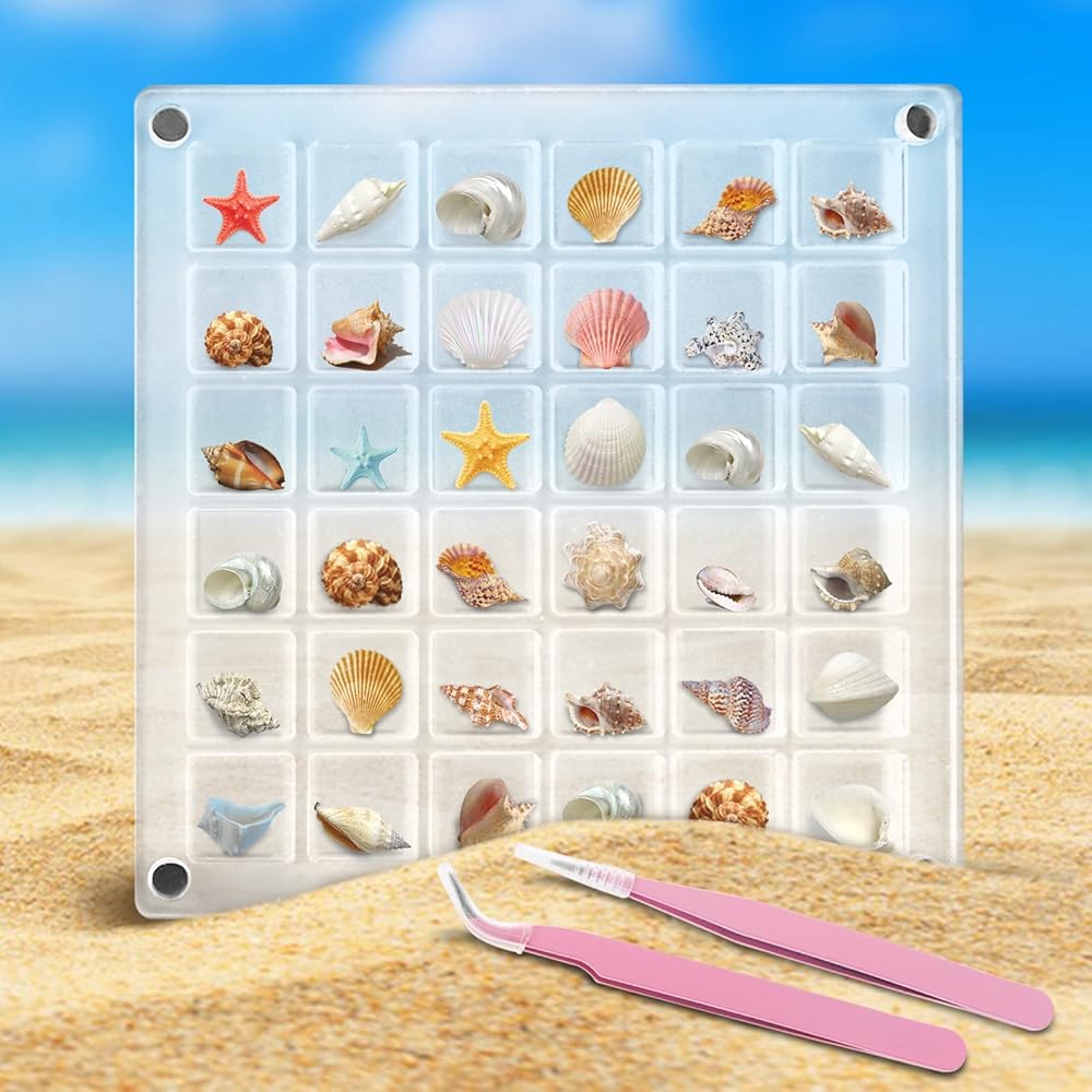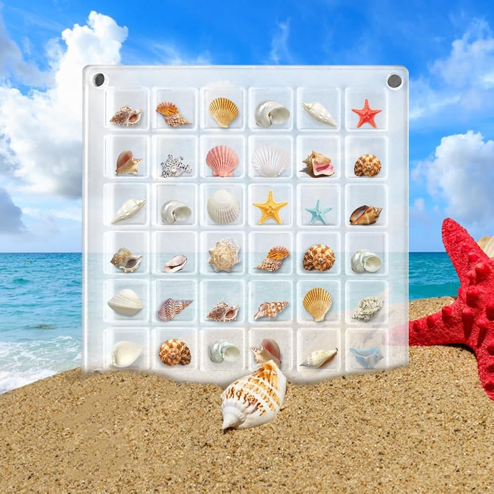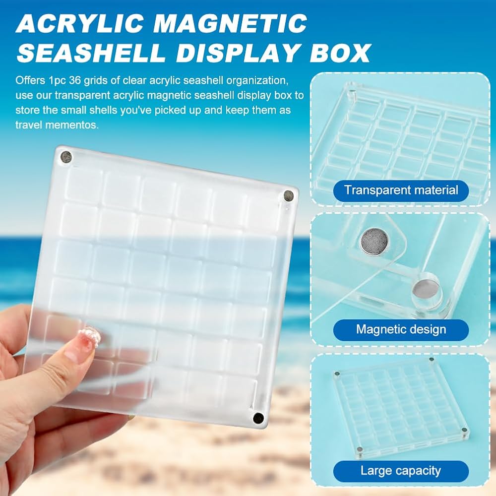 【FOR SEASHELL DISPLAY】Offers 1pc 36 grids of clearacrylic seashell organization, use our transparent acrylic magnetic seashell display box to store the small shells you've picked up and keep them as travel mementos, suitable for storing a variety of small items such as beads, nails, jewelry, stones, and more.