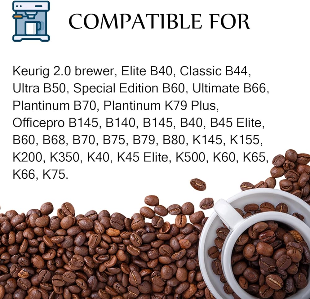 These Replacement filters made by IT'S PURE will fit for Keurig 2.0 and Older Coffee Machines Including: for Keurig 2.0 brewer, Elite B40, Classic B44, Ultra B50, Special Edition B60, Ultimate B66, Plantinum B70, Plantinum K79 Plus, Officepro B145, B140, B145, B40, B45 Elite, B60, B68, B70, B75, B79, B80, K145, K155, K200, K350, K40, K45 Elite, K500, K60, K65, K66, K75.