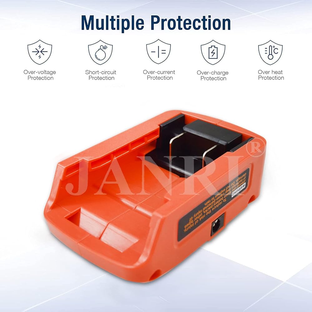 Compatibility- The usb battery adaptor is compatible with 18V BLACK+DECKER li-on LBXR20 LB20 LBX20 LBX4020 LB2X4020 LBXR20-OPE LBXR2020-OPE LB2X3020-OPE LBXR20BT LBXR20CK EGBL18 EGBHP188 GKC1820 STC1815 BL1514 BL1518 BL2518 BL1520 BL2018 BL3018 BL4018 etc (Battery not Included) ,NOT fit NI-MH battery