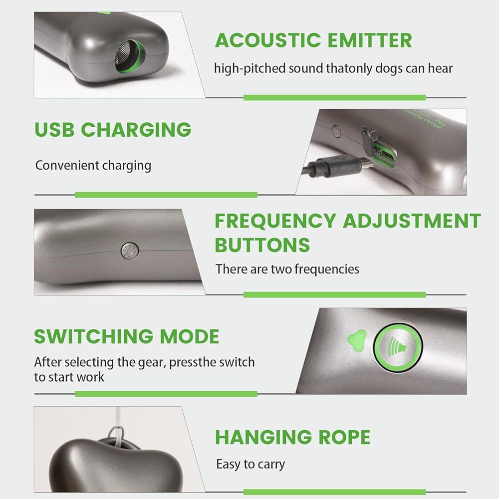 Effective Anti Barking Device: This is an ultrasonic dog bark deterrent that emits safe frequencies of sound to train your dog and stop unwanted barking, scratching, digging, and biting behavior.