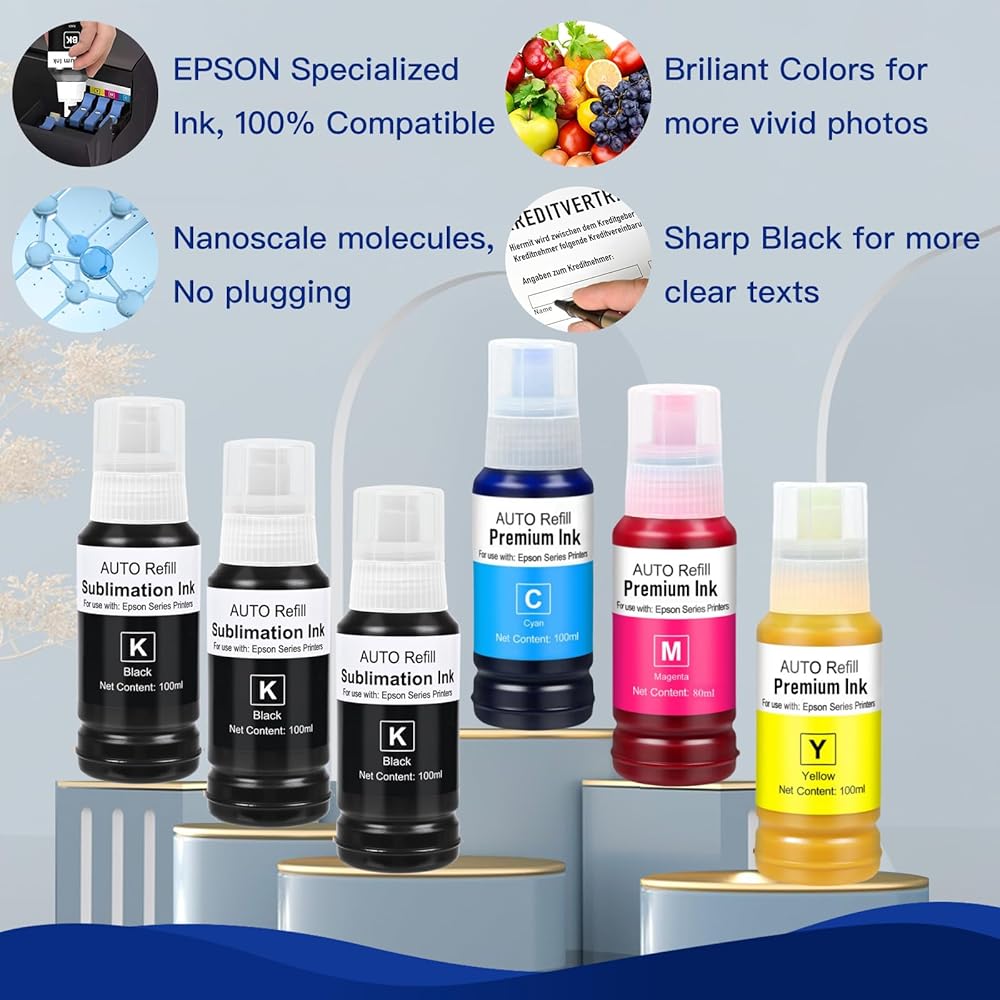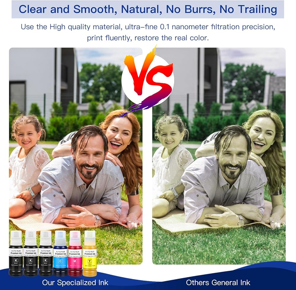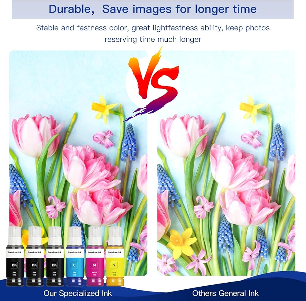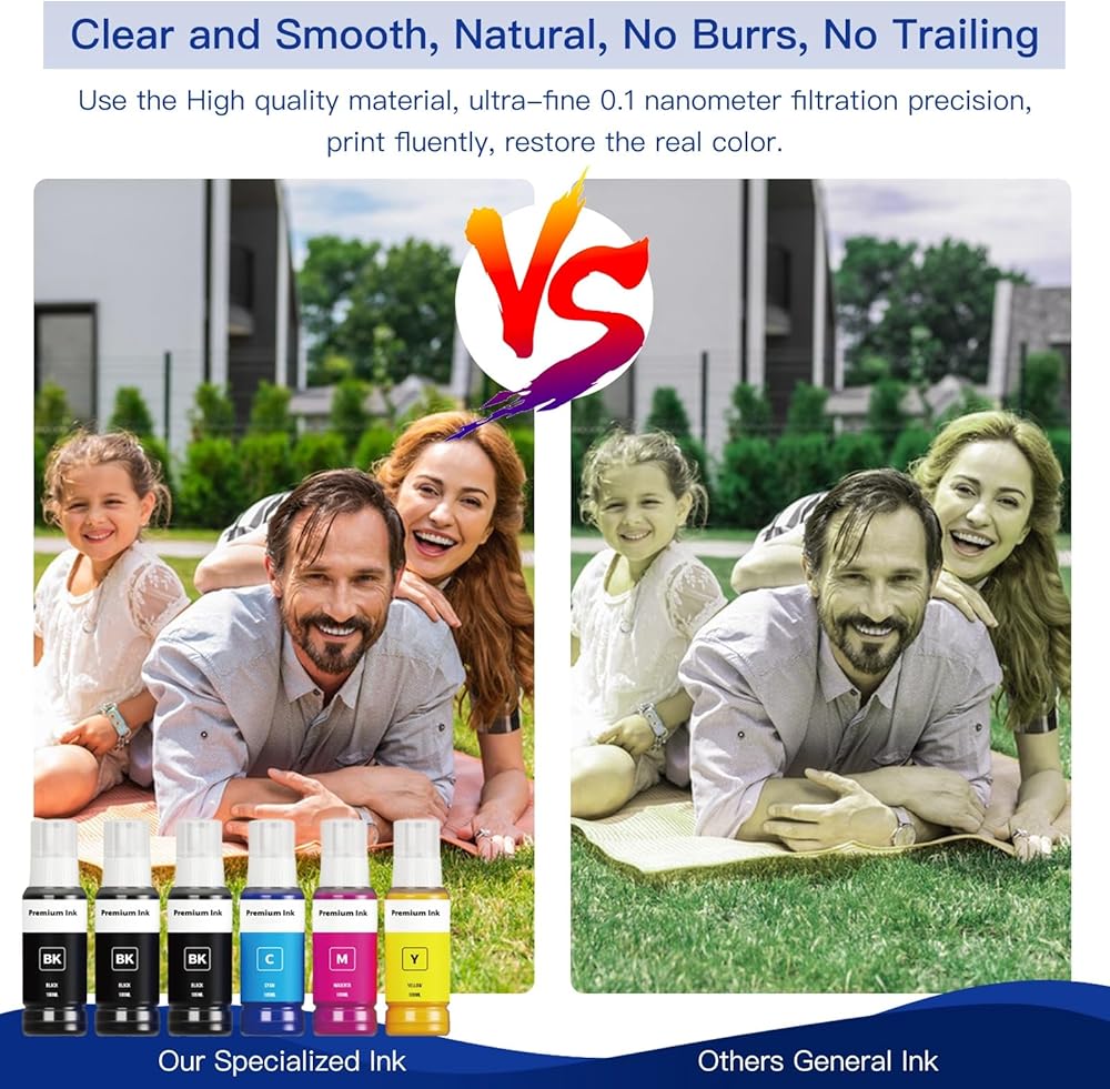 【JETEVO Ink Technology】: Our EPSON Specialty Ink Formulation use Japan high-quality colorants, with special formula, Outstanding print performance with precise color, high saturation, fast drying,no burrs, no trailing, 0.1 nano-scale molecular ink with excellent fluidity, 100% compatible without plugging, better protection of the print head.