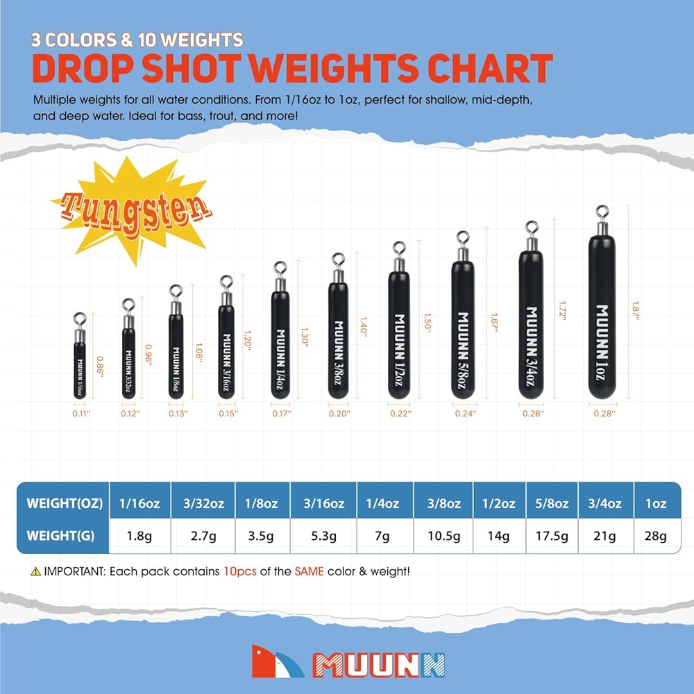 【Upgraded Effective Fishing Sinkers】no chip or fade,The fishing sinkers weights will be corrosion resistance and be suitable for both saltwater and freshwater and not be rusted after using. MUUNN tungsten weights are more durable than other brand tungsten weights