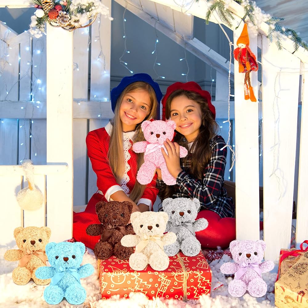 What you get: the package includes 7 pieces little stuffed bears, which are suitable for hugging and cuddling; they can accompany in your side,so you can share the bitter and the sweet in life and experience growing dribs and drabs; With these bear toys, you're not alone anymore