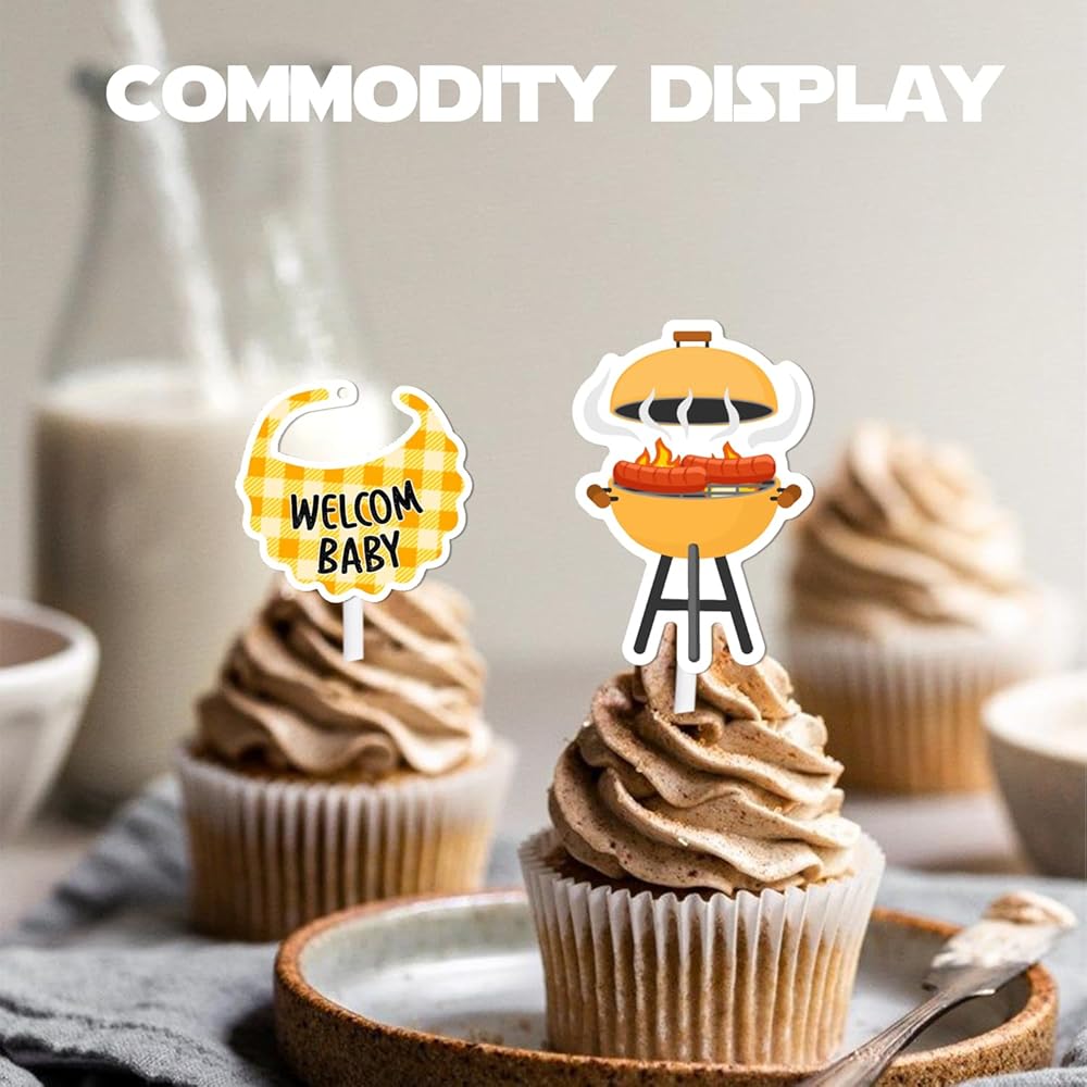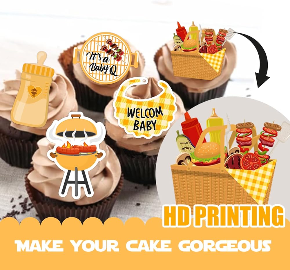 18 قطعة ذهبية لامعة للشواء والحلوى والكب كيك توبر استحمام الطفل الطبخ في الهواء الطلق الكباب موضوع ديكور لوازم الأولاد والبنات عيد ميلاد سعيد زخارف الحفلات الصيفية