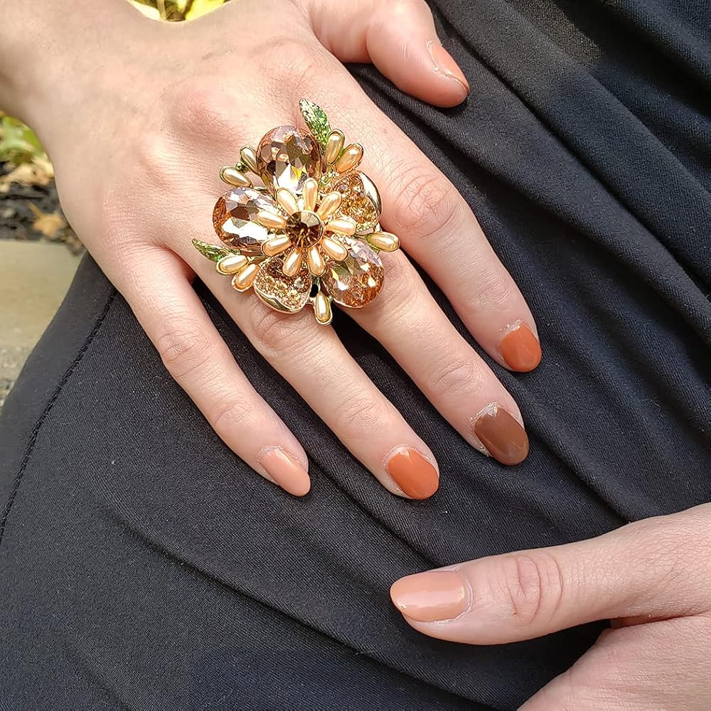 Are you looking for a fabulous cocktail ring that is as feminine as it is fashionable? Our statement cocktail ring captures the vivid beauty of nature in this stunning floral ring. Glittering crystals catch the light beautifully, adding major sparkle, making this ring spectacular!
