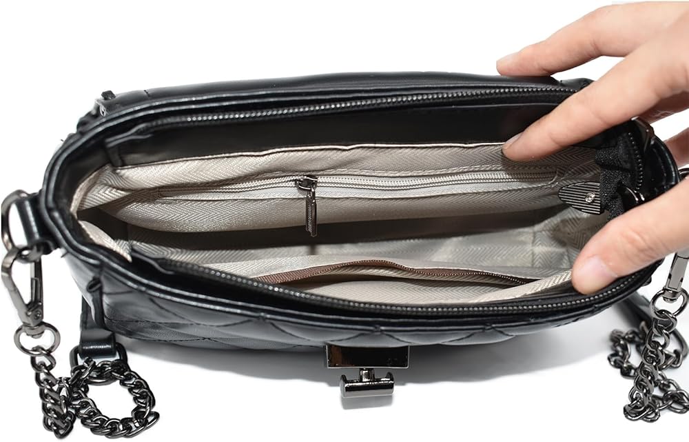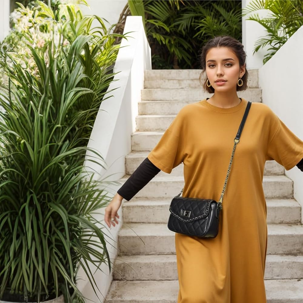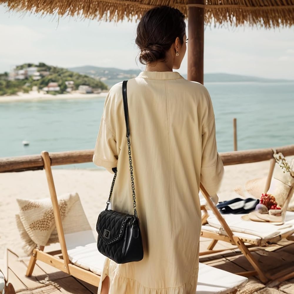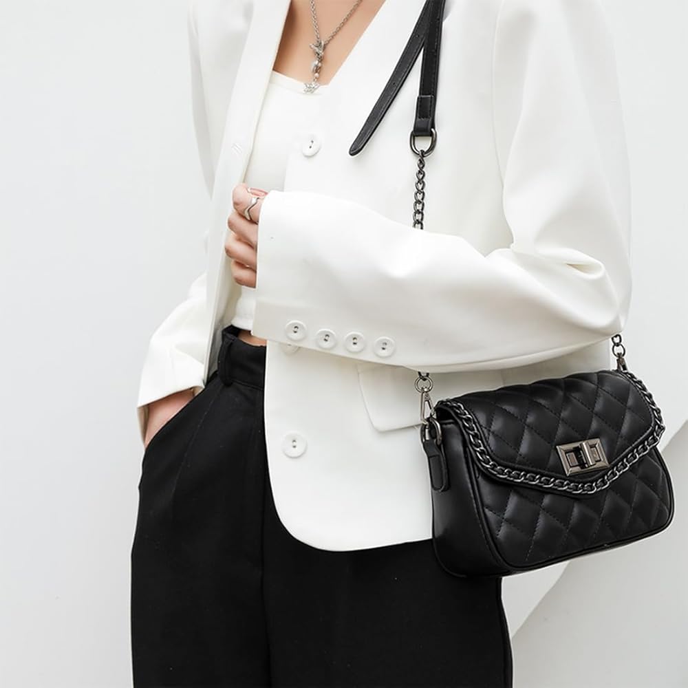 QUILTED CROSSBODY PURSE DESIGN: Offering high-level fashion and sophistication, this small quilted crossbody bag with chain decoration is your perfect partner for all outings. Its quilted design elevates your style while offering plenty of space for your essentials.