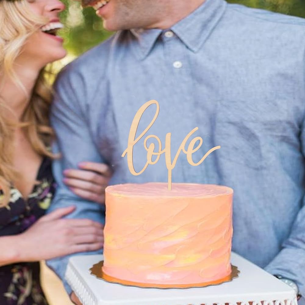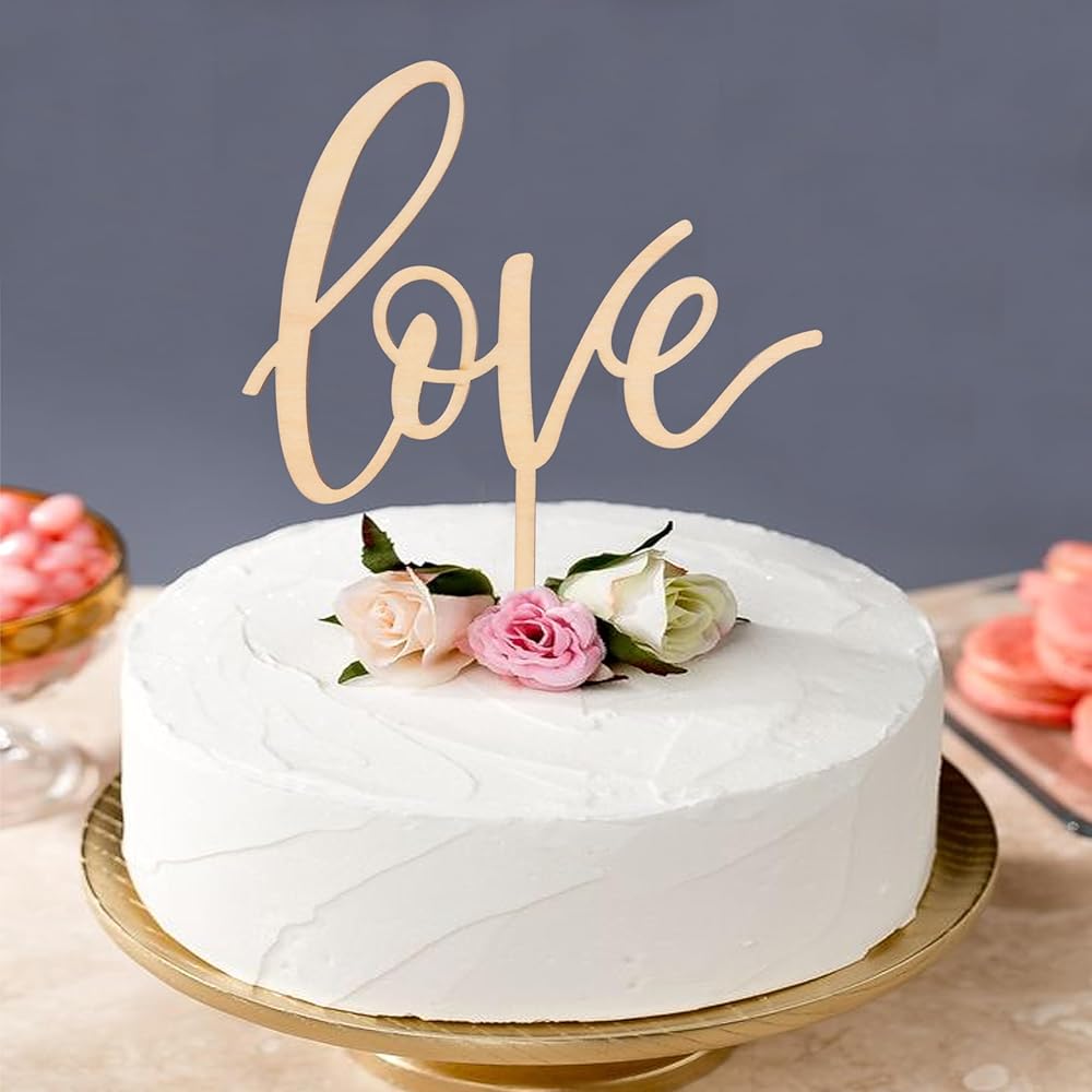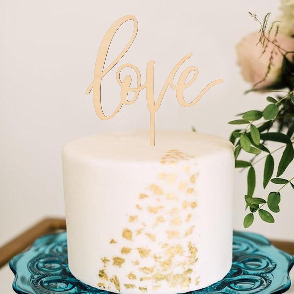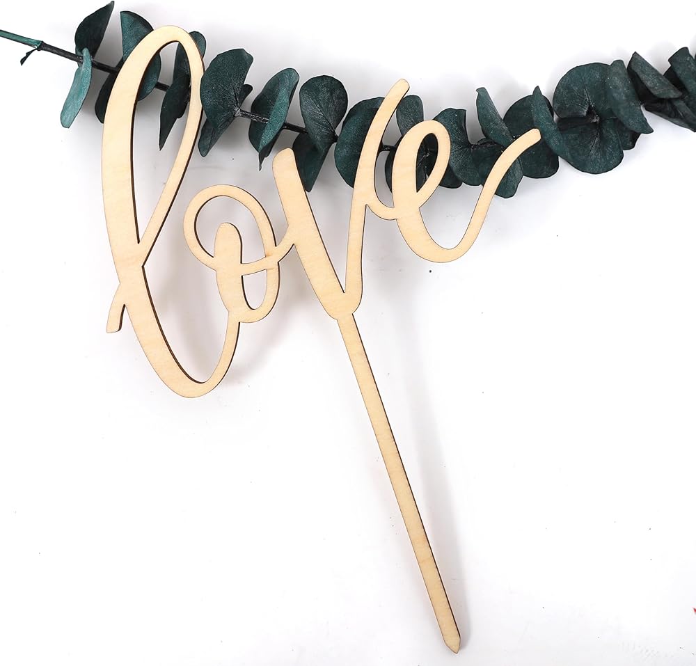 Love wood Cake topper - Rustic Wooden Love with Hearts Cake Topper,Valentine's Day,Day engagement parties decorate cake hats,wedding cake topper