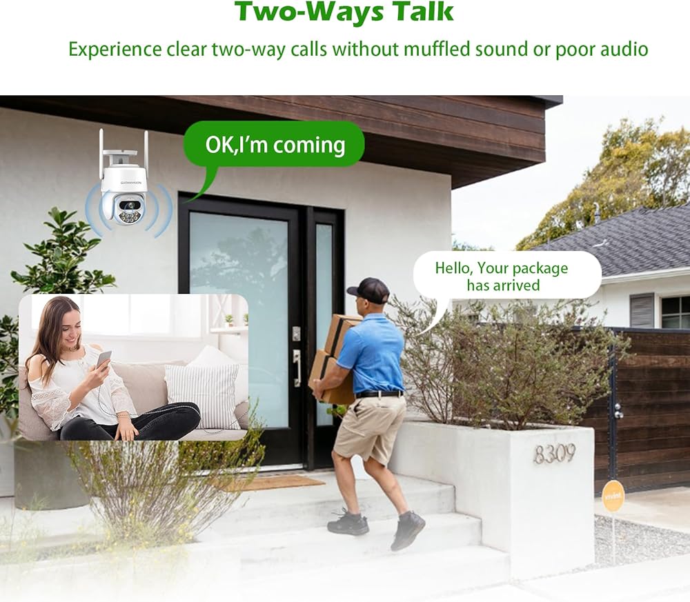 【Two way talk & 24/7 Recording Strorage】 The outside cameras includes a built-in noise-resistant microphone and speaker for clear two-way audio communication, even if you are not around your family, you can view the situation of your home and interact with your family or strangers.Recordings can be saved via SD card (not included, supports a maximum of 256GB) or cloud storage. Never miss a moment of your home and enjoy the freedom to playback recordings.