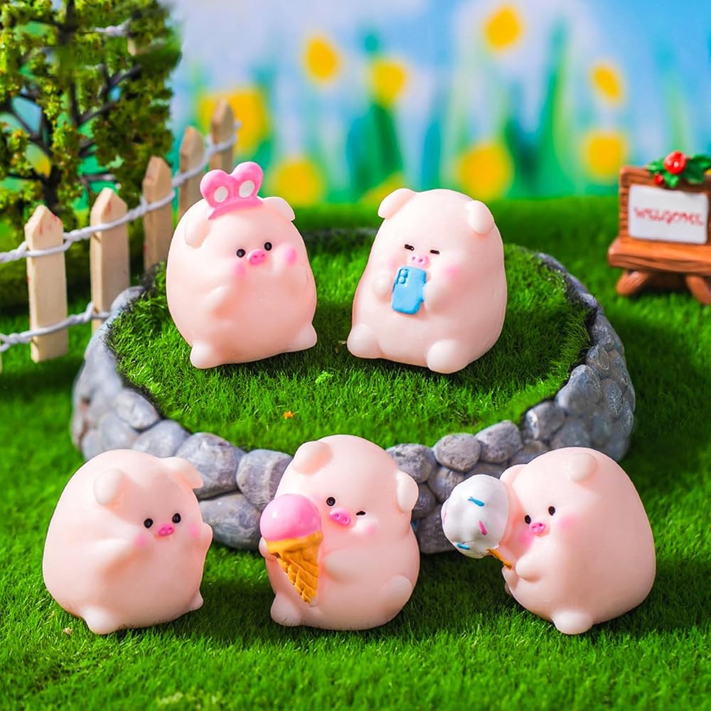 Versatile Use: Use these mini resin pig figurines to decorate dollhouses, adorn tabletops, beautify gardens, or embellish cakes, offering endless possibilities for creative expression.