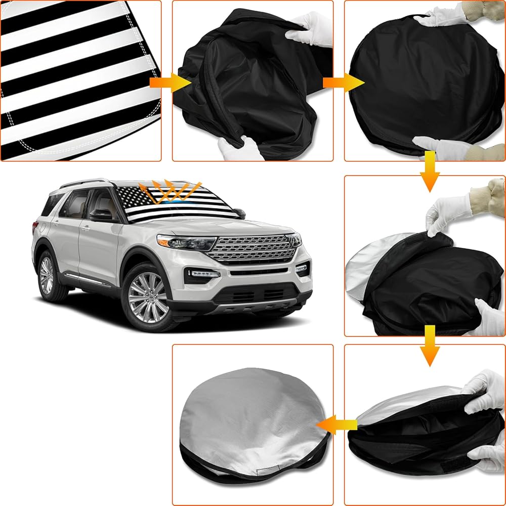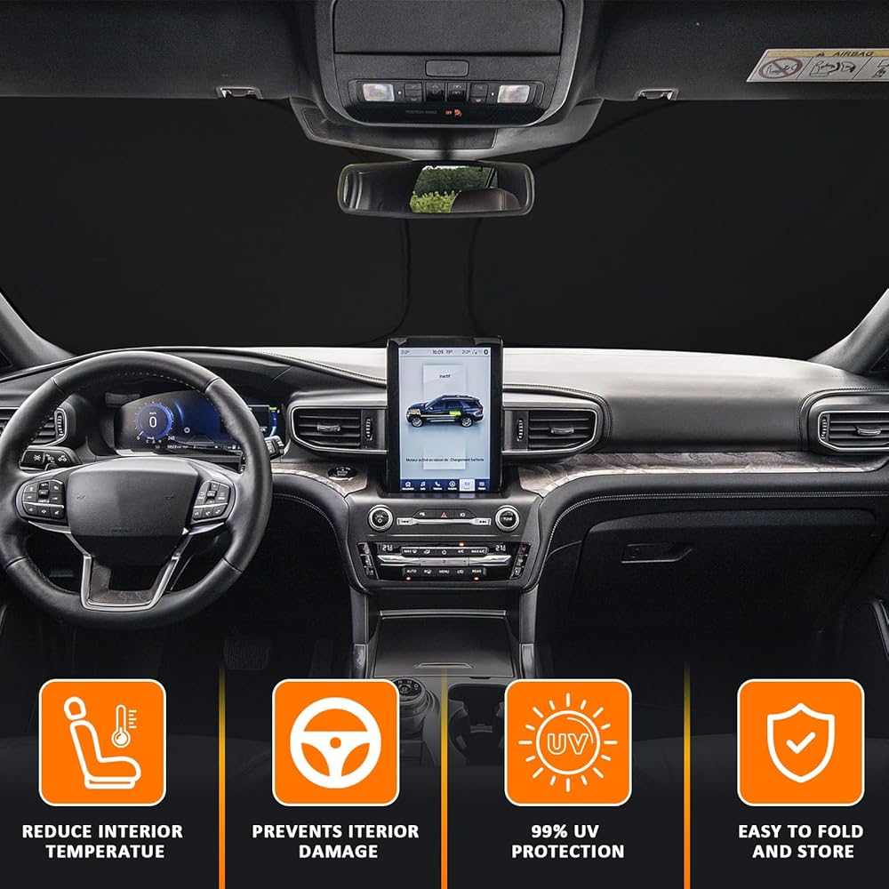 Fitment Lists: D-Lumina Windshield Shade Cover for Fo-rd Explorer 2020-2024. Fully covered your windshield. Perfectly fit for your vehicle without gap. Don't let the the harsh sun bake your interior accessories.