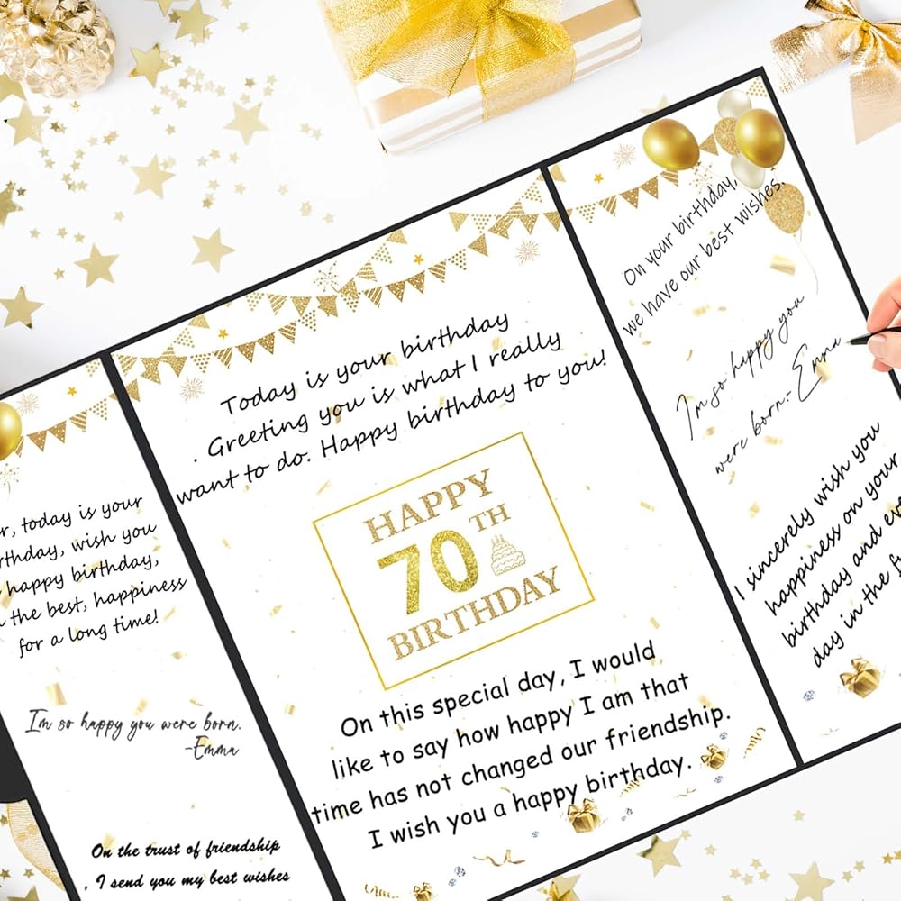 Roetyce 70th Birthday Decorations, Black Gold Happy 70th Birthday Guest Book, 70th Birthday Gifts for Women Men, Cheers to 70 Years Birthday Party Supplies, Jumbo 70th Birthday Card Signature Board