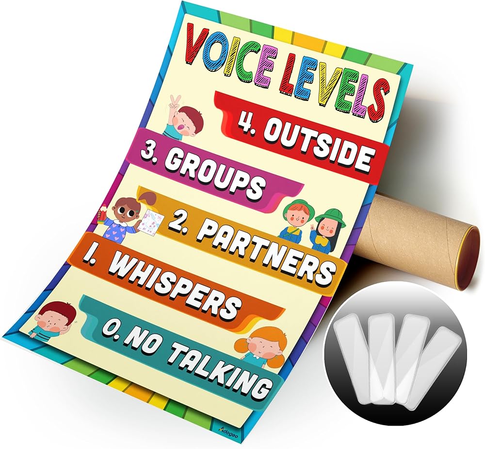 🎁 [Voice Level Chart Poster]: The Voice Level Chart Poster features a visually appealing design that includes different noise level indicators, helping students understand and adhere to appropriate noise levels in various classroom activities.