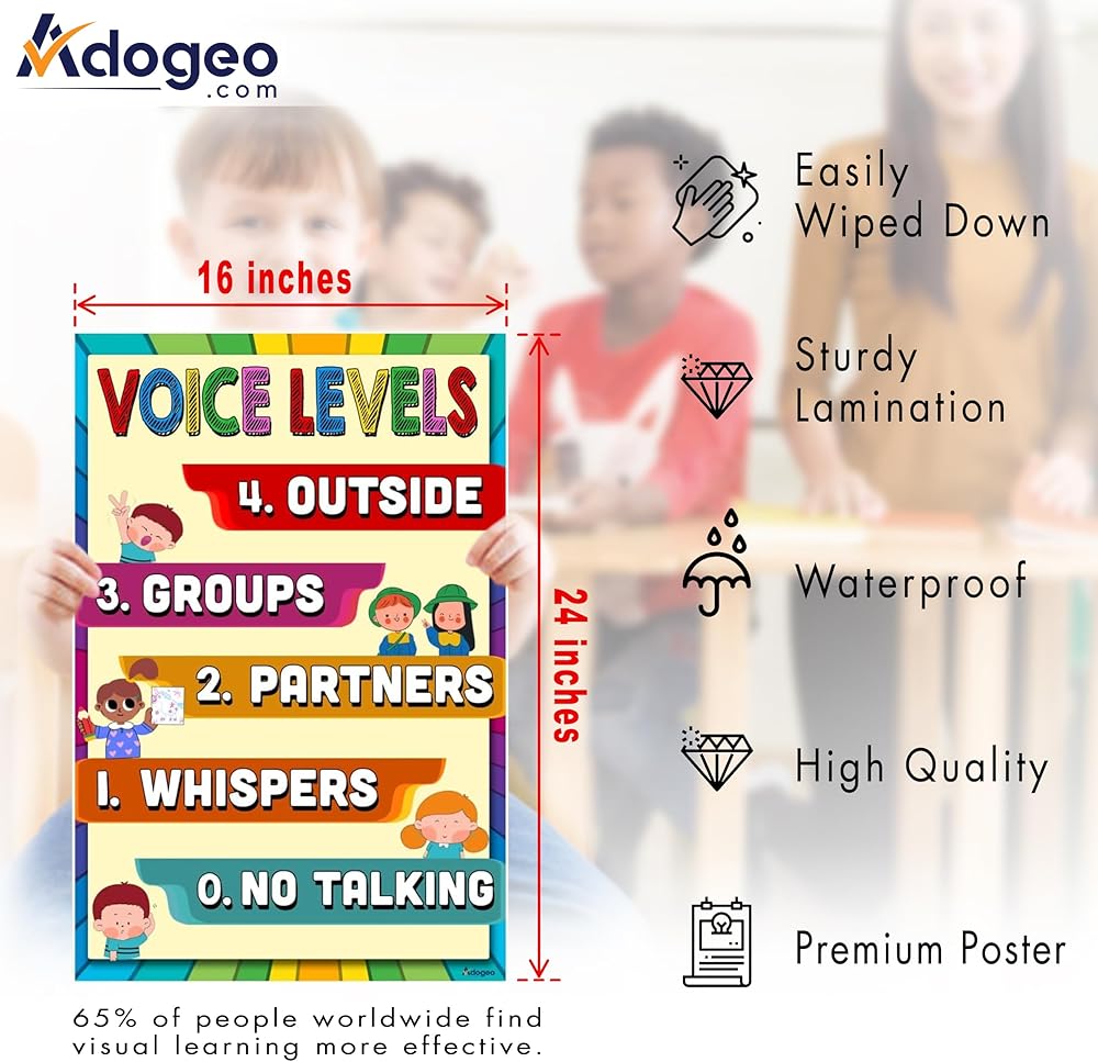 🎁[PERFECT SIZE]: Measuring 16''x24'', this Voice Level Chart Poster by Adogeo is the ideal size for displaying in classrooms, ensuring its visibility and impact.