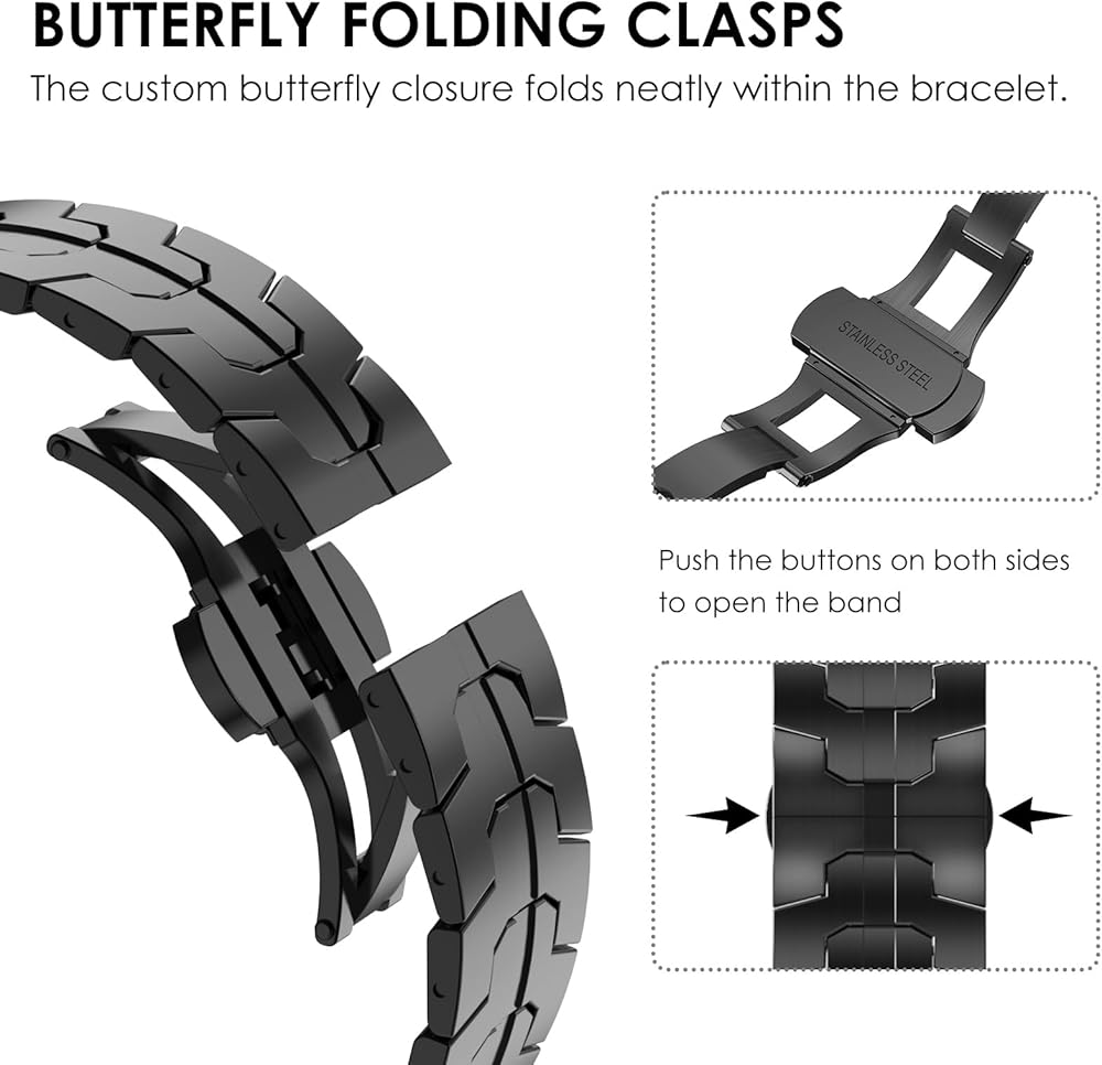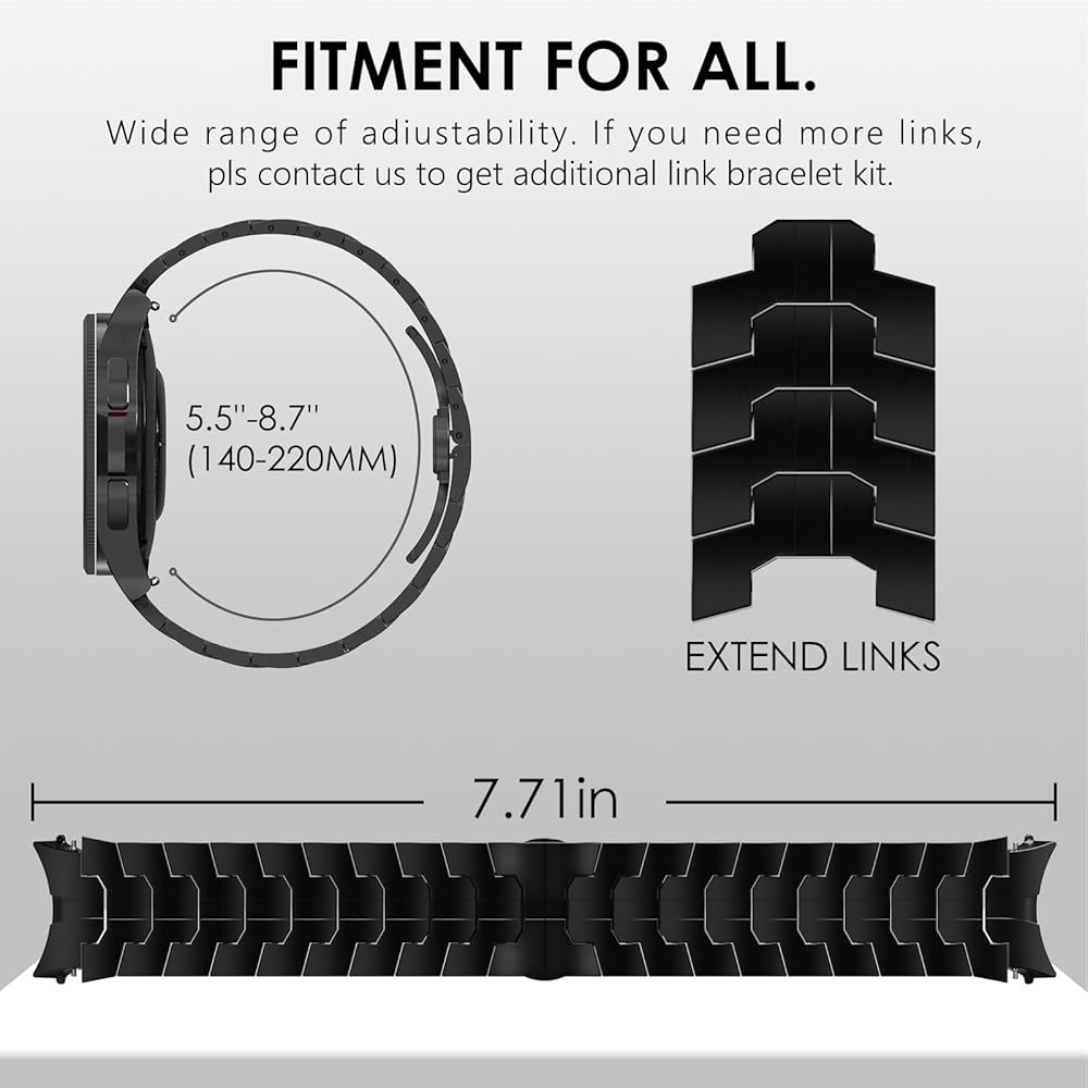 [Magnetic Security Clasp] - The secure magnetic clasp locks your Samsung Galaxy Watch 6 Classic band firmly on your wrist in no time and is easily interchangeable. Band fits 5.5"-8.3"(140-210mm) wrists, if you need more links, pls contact us to get additional link bracelet kit.