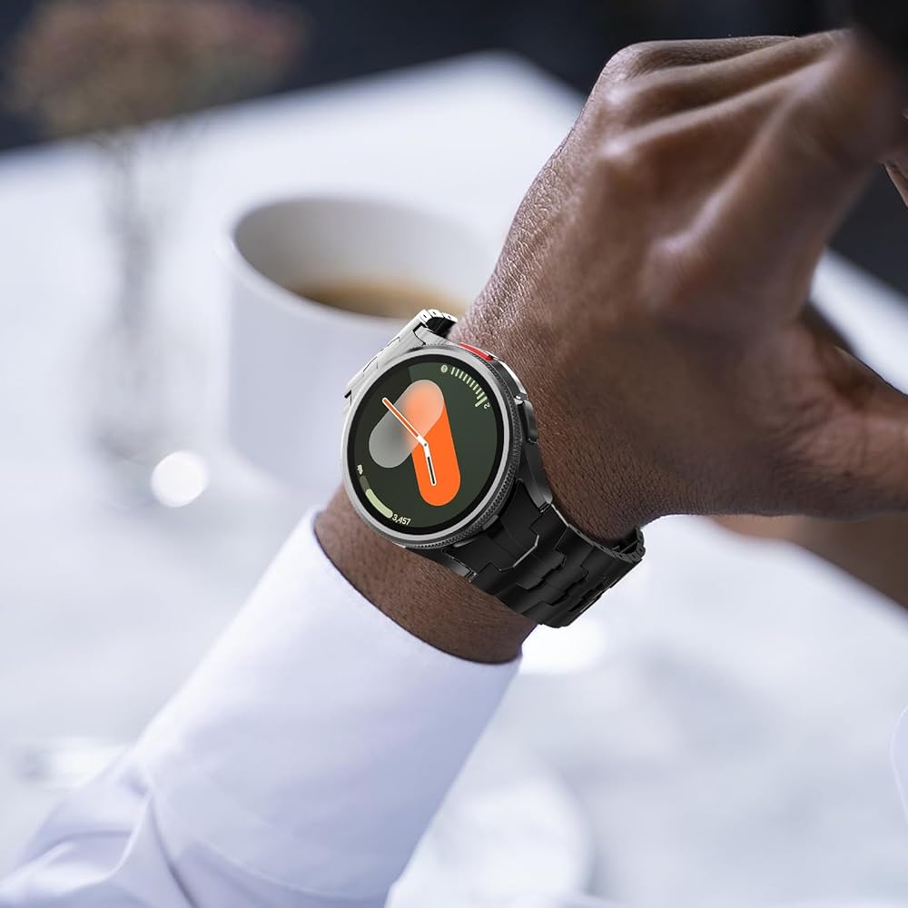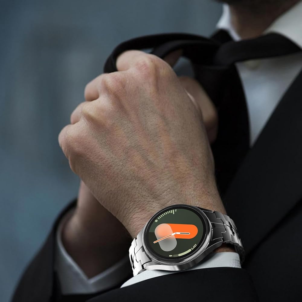 [Business Style Band] - This no gap stainless steel band makes the Galaxy smart watch blend into the business style. Compatible with Galaxy Watch 4/Galaxy Watch 4 Classic/Galaxy Watch 5/Galaxy Watch 5 Pro/Galaxy Watch 6/Galaxy Watch 6 Classic(40mm/44mm/42mm/46mm/45mm/43mm/47mm).