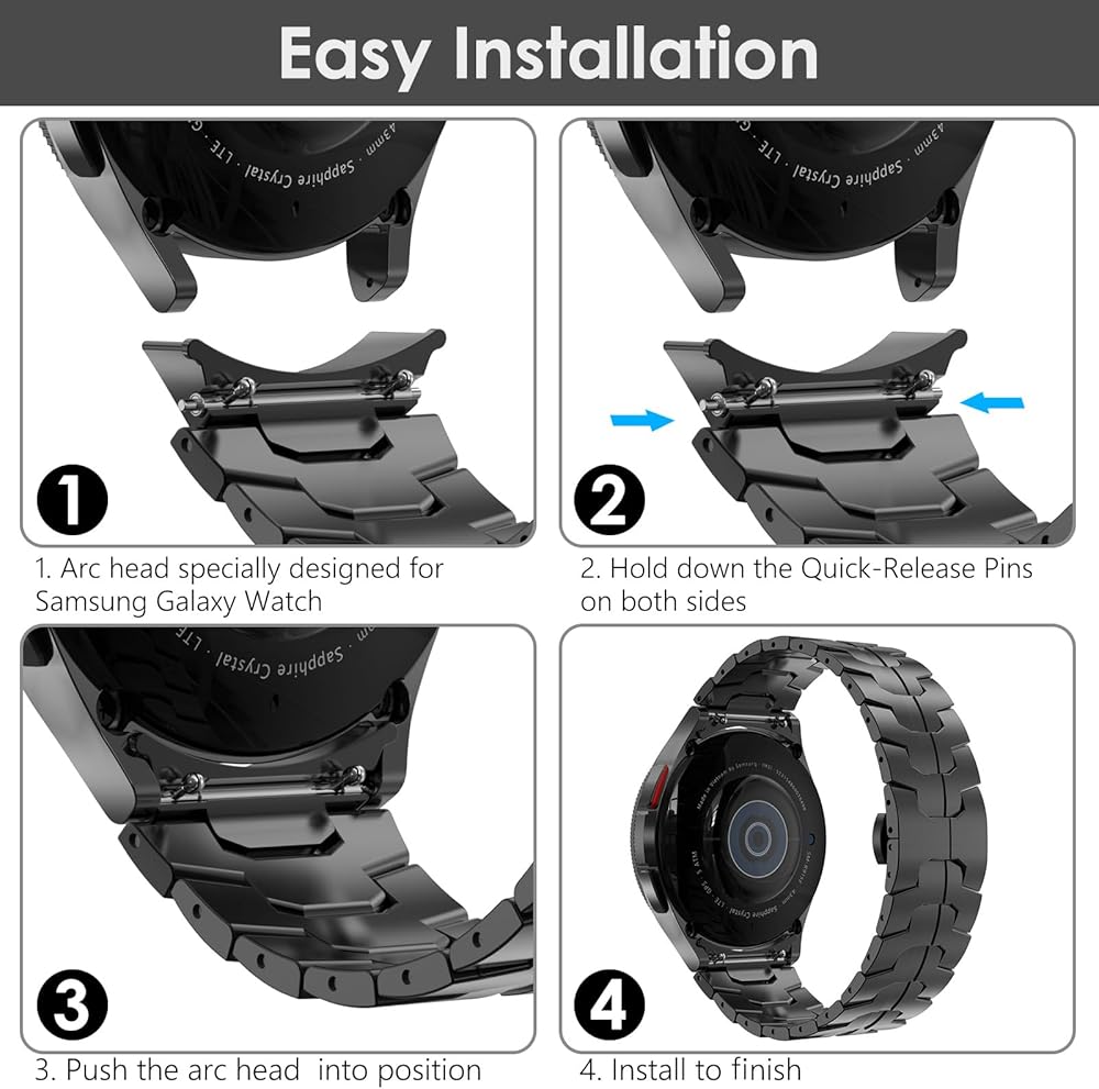 [No Gap Design] - Arc head specially designed for Samsung Galaxy Watch, precisely cut with your samsung watch for seamless connection and offer an integrated appearance. The smooth watchband links offers all-day comfort.