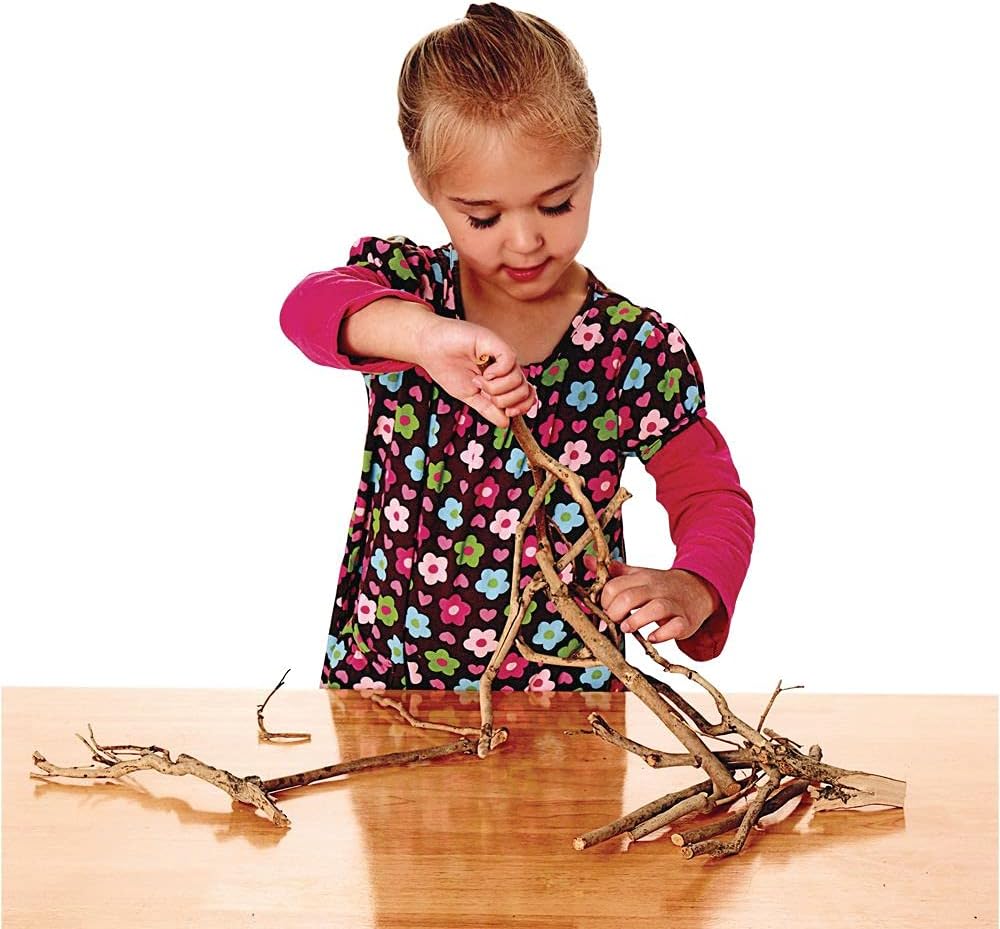 Natural Branches can inspire open ended learning! 17.6 oz (500 g) of natural branch cuttings are perfect for Loose Parts counting and sorting activities. Sizes range from approximately 8 inches L x ¼ inch W to 10 inches L x ½ inch W. *INSPIRE: Loose Parts help children inspire imagination and creativity on their own terms and in their own unique way. Loose Parts create endless possibilities and invite creativity. *CHILD CENTERED: Open-ended materials, environments, and experiences encourage problem solving and are child centered. *LEARNING EXPERIENCES: Children involve themselves in concrete experiences using Loose Parts, which lead to explorations that occur naturally, as opposed to adult directed. However, adults do play important, intentional roles in preparing, guiding, and documenting open- ended learning experiences. *MAKING CONNECTIONS: When children are encouraged to integrate play materials and areas in their own creative ways, they are experiencing open-ended learning.