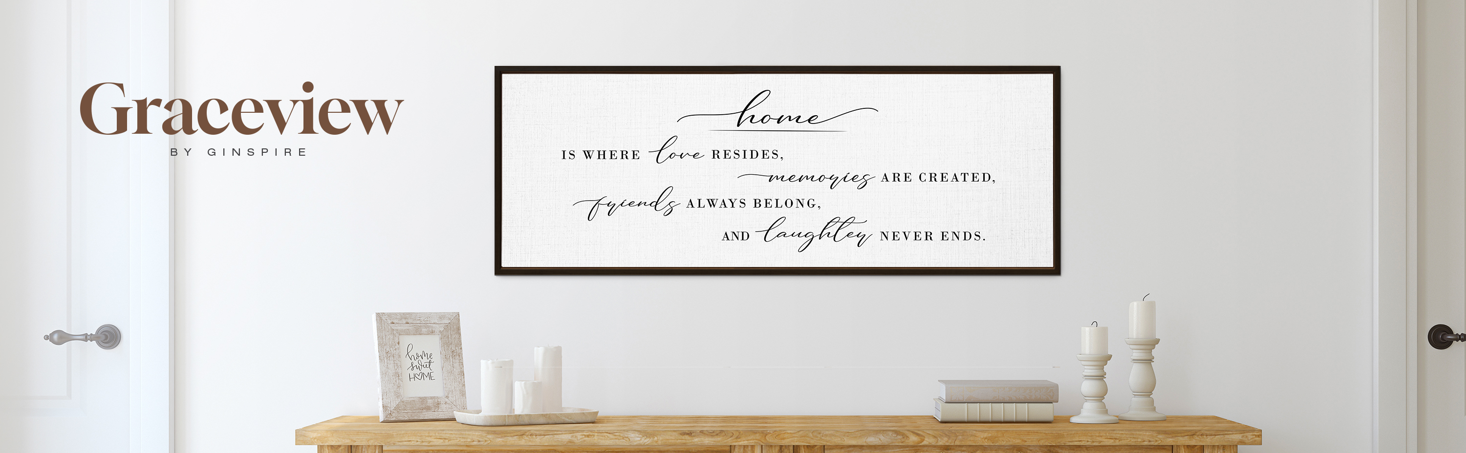 GraceView Home Is Where Love Resides Framed Canvas Wall Decor - 42"x15" Heartwarming Wall Art For Cozy Homes - Fade-resistant Print - Easy Setup In 5 Minutes - Premium Quality (Brown)
