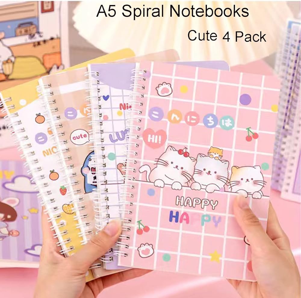 Kawaii Spiral Notebook Set: Each set includes 4 assorted cute cat designs(as picture shows). A great choice for back to school set