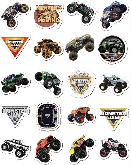 20 pc Value pack Monster stickers Jam decal Waterproof Vinyl Aesthetic Suv Truck Colorful Laptop Bike Bumper Car Luggage Skateboard Water Bottle Guitar Phone, Tablet