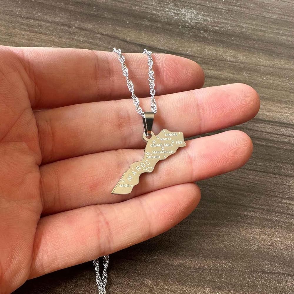 💖Chain Information:💖Map necklace comes with pendant and a wave chain.Chain length:50CM(20"),width:2.0MM.