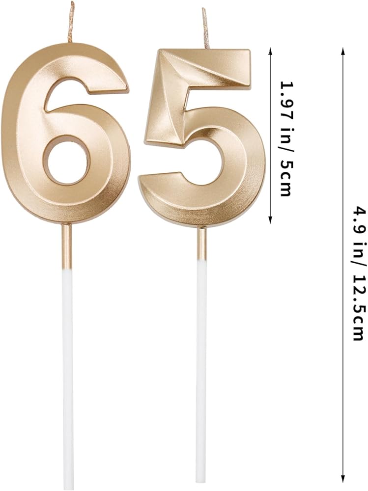 Champagne Gold 65th & 56th Birthday Candles for Cakes, Number 65 56 Candle Cake Cupcake Topper for Birthday Anniversary Party Decoration