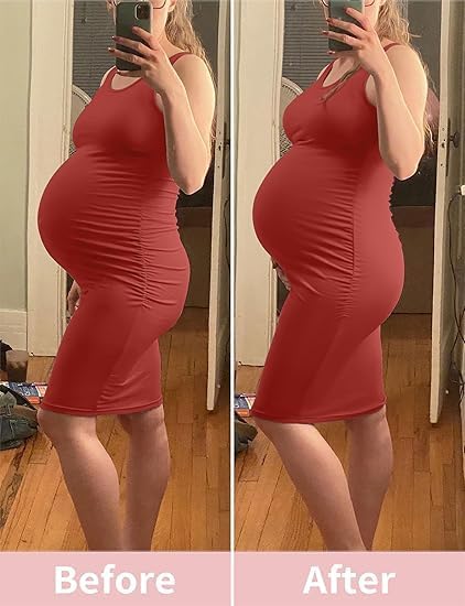 [Various Occasions] Perfect for various occasions, including baby showers, photoshoots, gender reveal, party, wedding guest, work, everyday wear. They provide a seamless and stylish look that complements any maternity wardrobe. PREGNANCY DRESSES/ SHAPEWEAR OVER BELLY