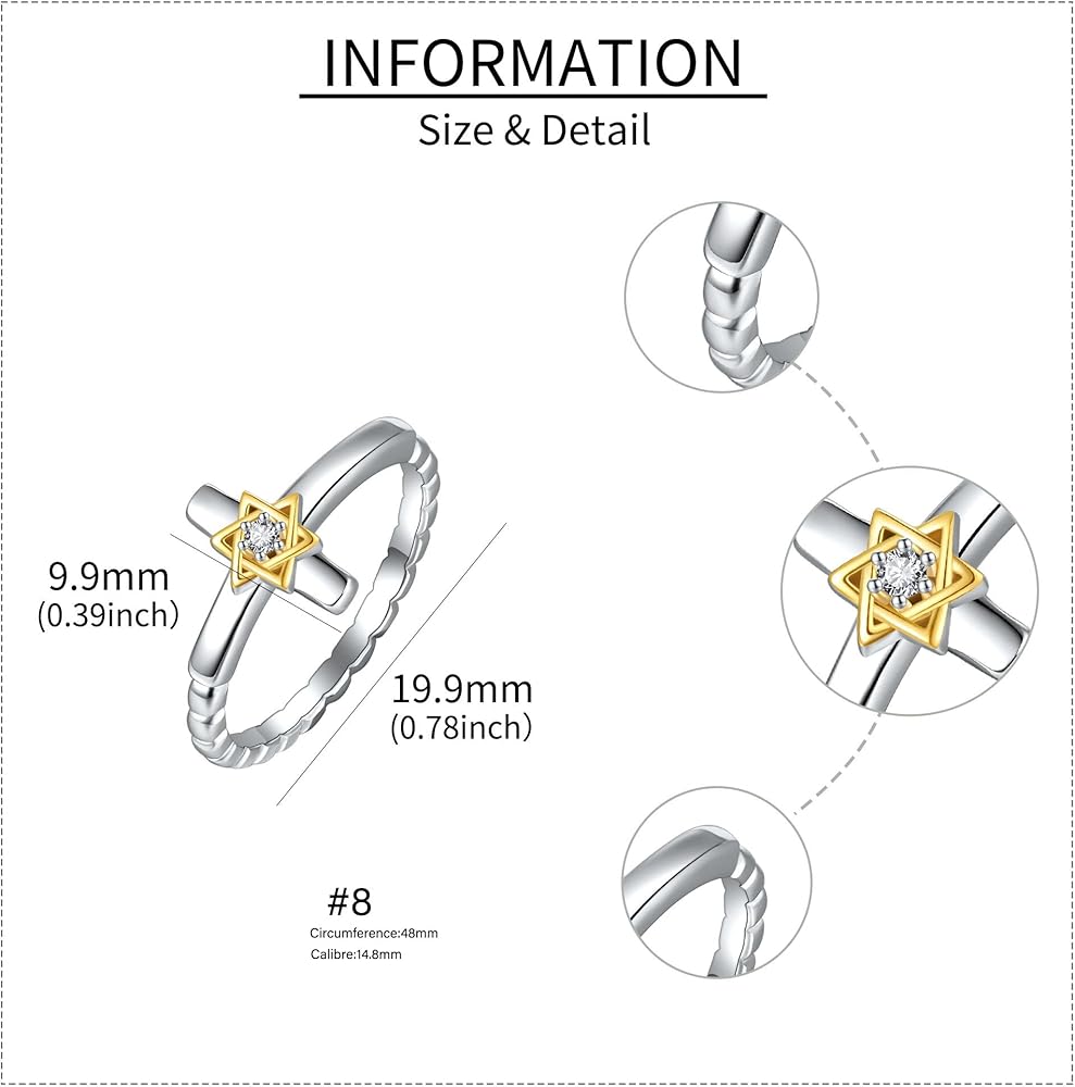 【IDEAL GIFTS】The star of david ring is a meaningful ring that makes a great gift choice for birthdays, special occasions or just any day. It is perfect as a Valentine's Day, Christmas, Mother's Day Birthday gift for your family, sisters, friends or your loved ones.