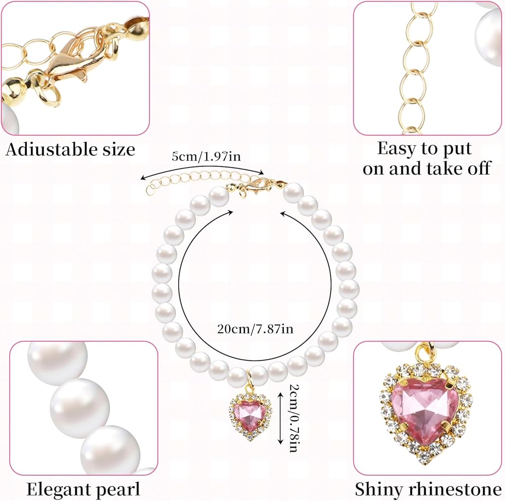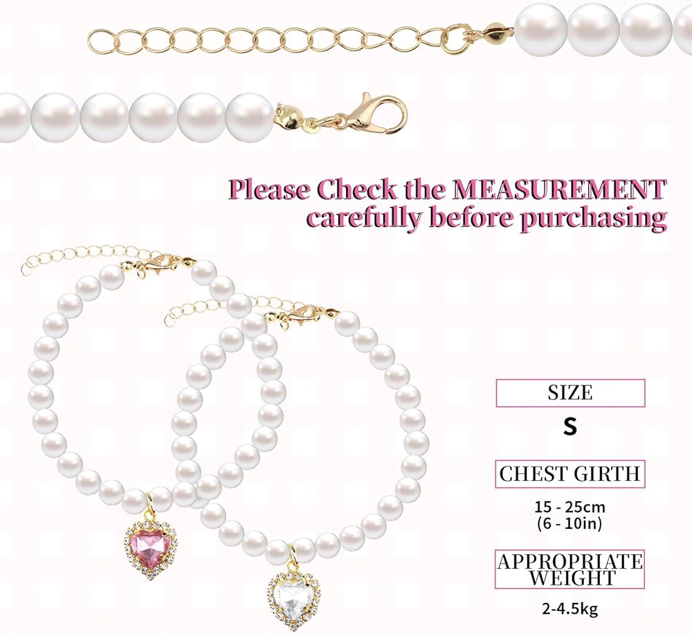 【Quality Materials】: These girl dog necklaces are crafted from high-quality imitation pearls, alloy, and rhinestones for safety and durability. It not only adorn your pet in style but also ensure their comfort and well-being.