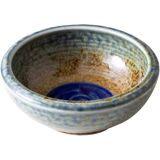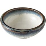【Small White and Blue Glazed Ceramic Suiban】 Small rounded white flower ikebana vase with a blue glaze on the edge. The bright color puts a lively tone in your room and floral arrangements. Although it is a low vase, its depth allows you to pour plenty of water in and grow flowers.