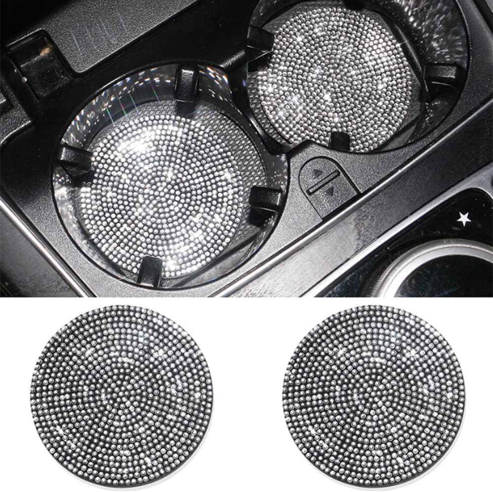 2 Pack Bling Car Cup Holder Coaster,Fashion Anti-Slip Shockproof Universal Vehicle Cup Holders Coasters Insert Bling Crystal Rhinestone Car Accessories for Women (Silver)
