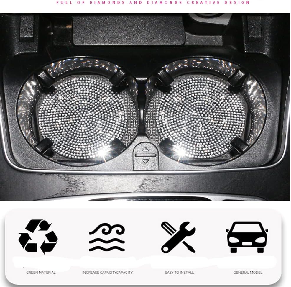 【Easy to Use】The car coasters for cup holders bling are easy to remove for cleaning and easy to air dry, just wash it directly in water with a little dish soap, and wipe it directly with a wet towel.
