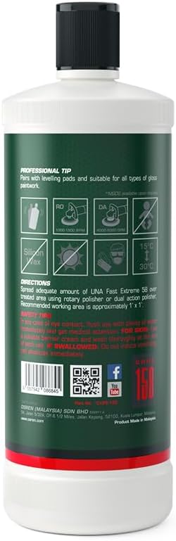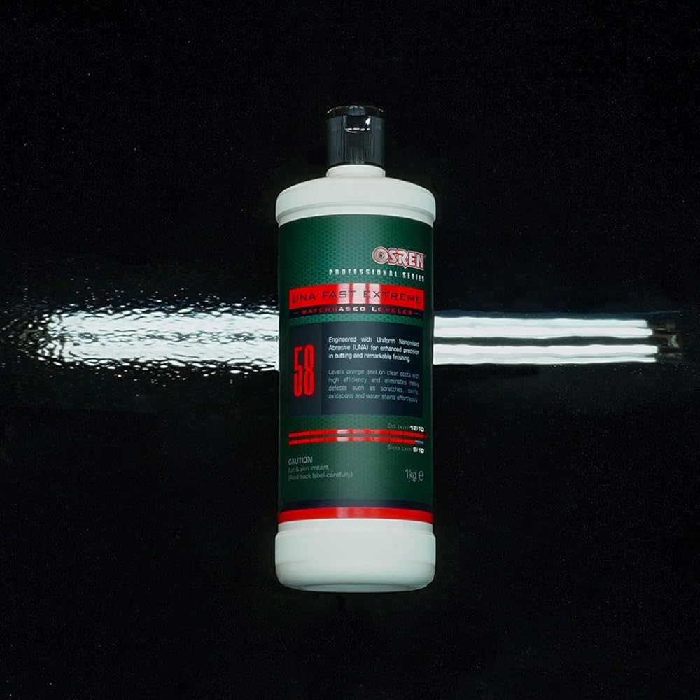 Produces Mirror Shine - OSREN UNA Fast Extreme 58 is formulated to trim off any uneven surfaces that distorts reflection on paint so a flat surface that reflects object and light evenly can be revealed.