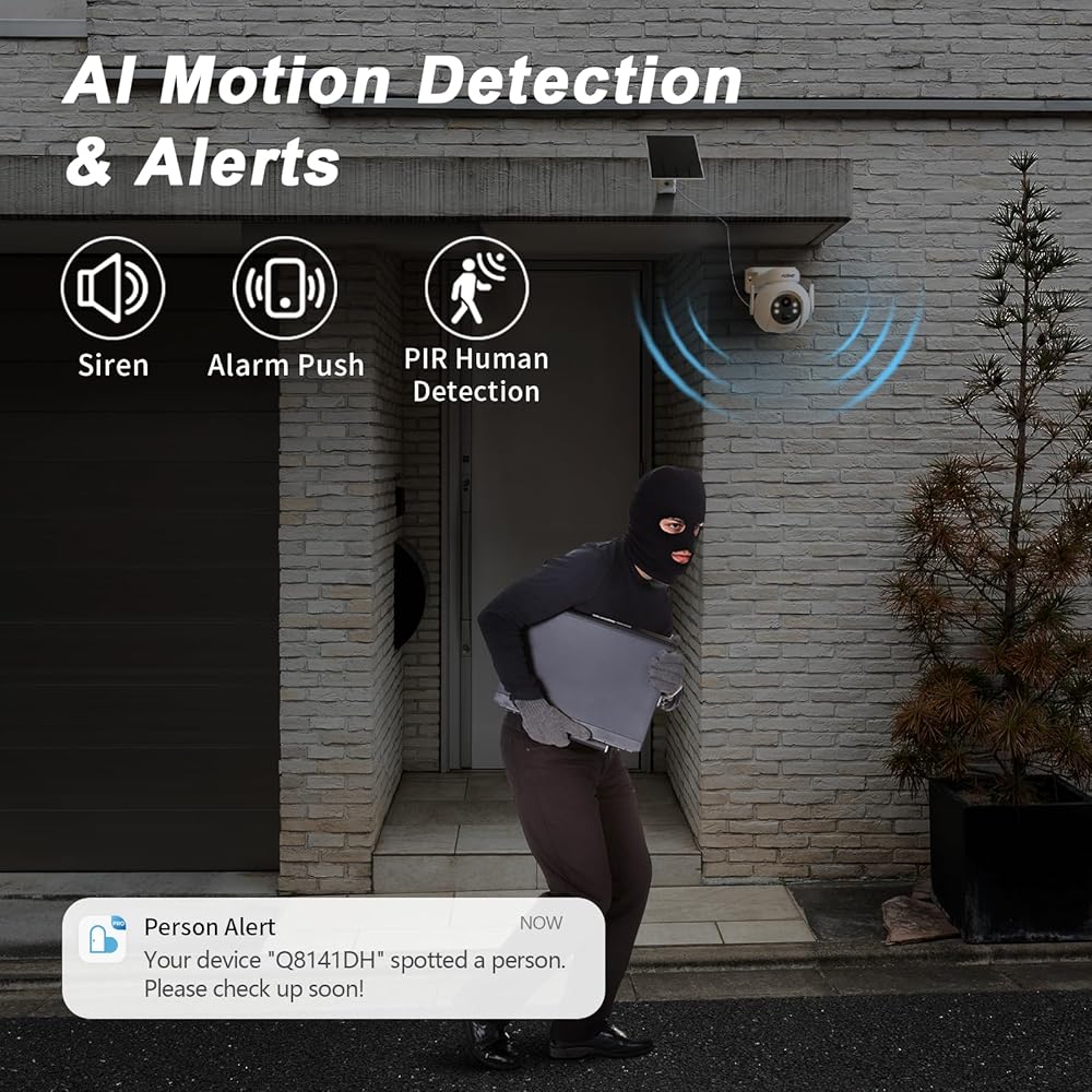 【PIR Motion Detection & Alerts】This home security camera uses an PIR sensor accurately detects human forms, providing instant alerts when motion is detected. In addition, it allows for the setting of audible sirens to deter potential intruders. Rest assured that with our camera's advanced features, you can monitor your house with ease and peace of mind.