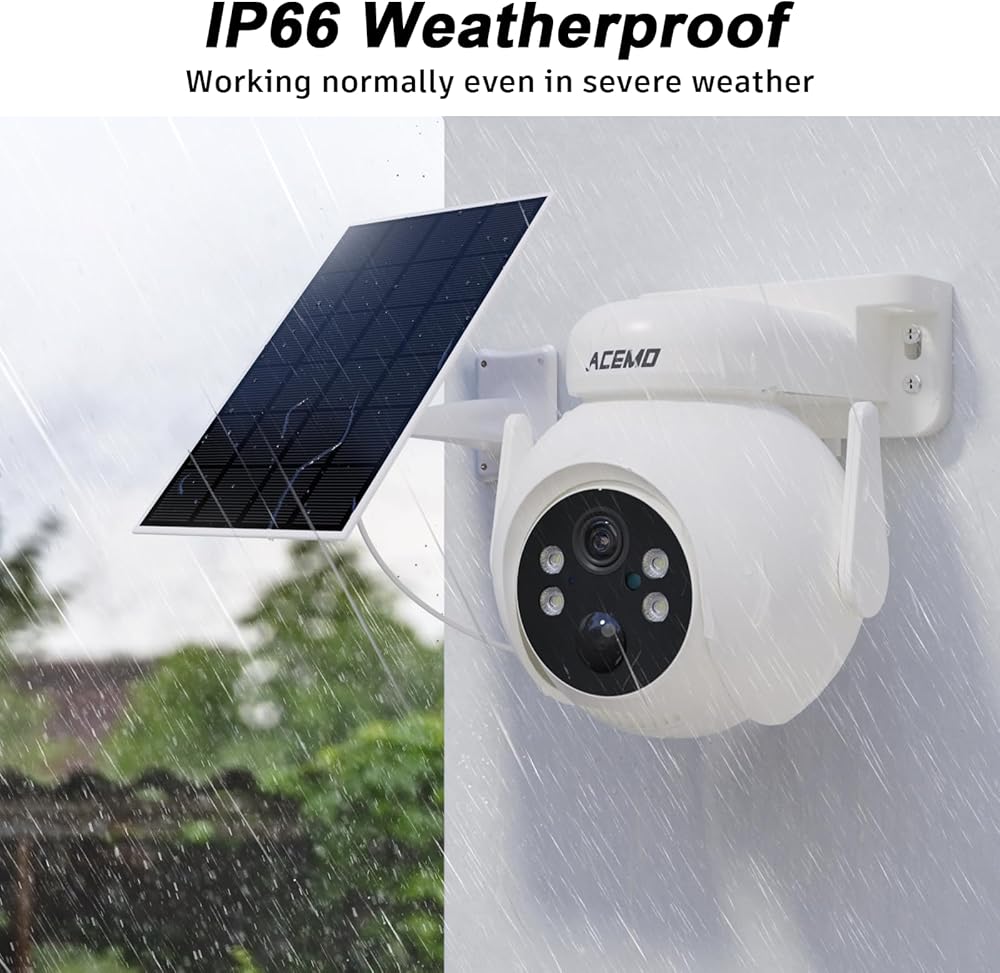 【2K HD Resolution & Pan Tilt 】Acemo security cameras outdoor was upgraded 2K 3MP (2304*1296) resolution to captures clear and detailed footage, enabling better identification of individuals and objects in the surveillance area. Pan 270° Tilt 90° provides enhanced flexibility and coverage for monitoring larger areas without the need for multiple cameras, it can be easily controlled via a app. IP66 waterproof ensuring reliable monitoring even in bad weather.