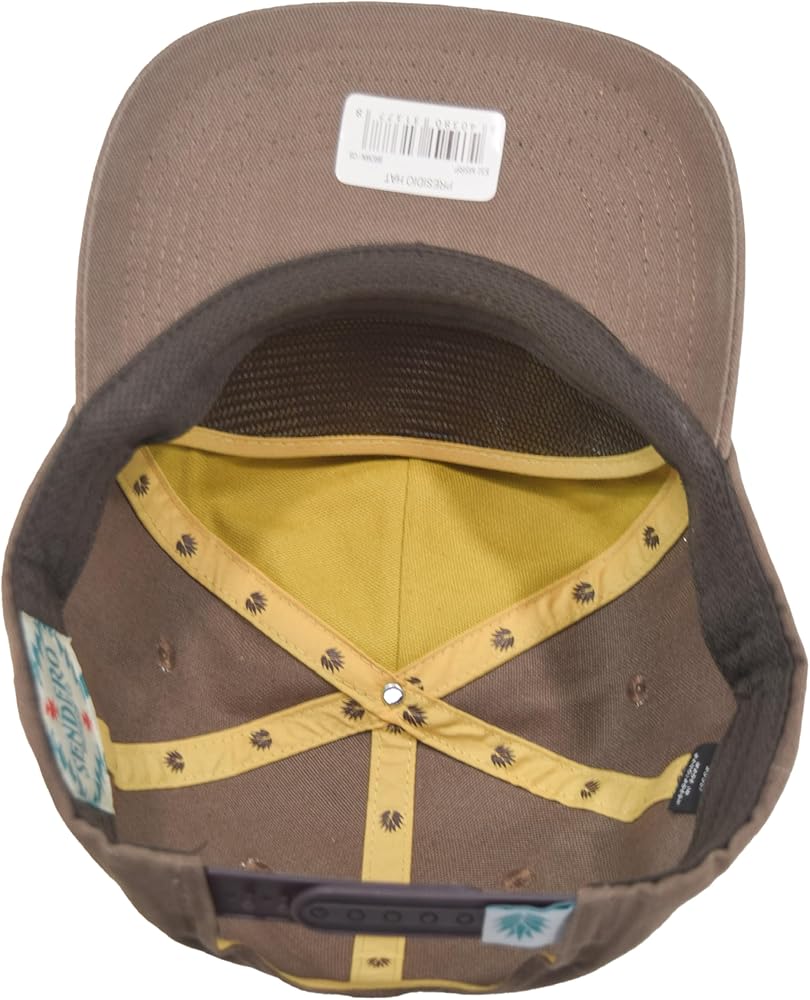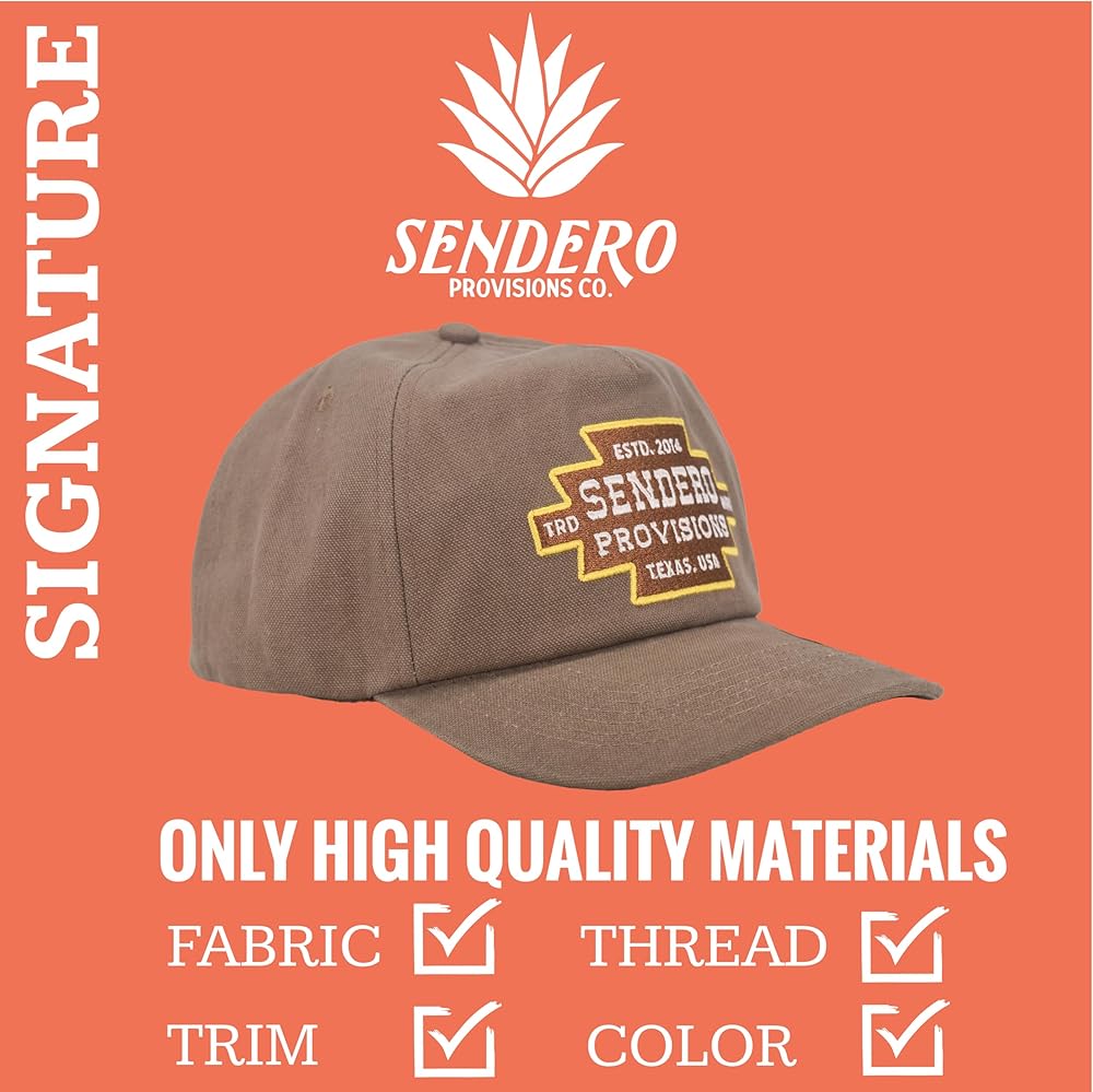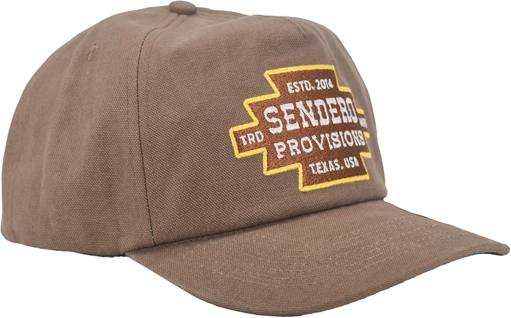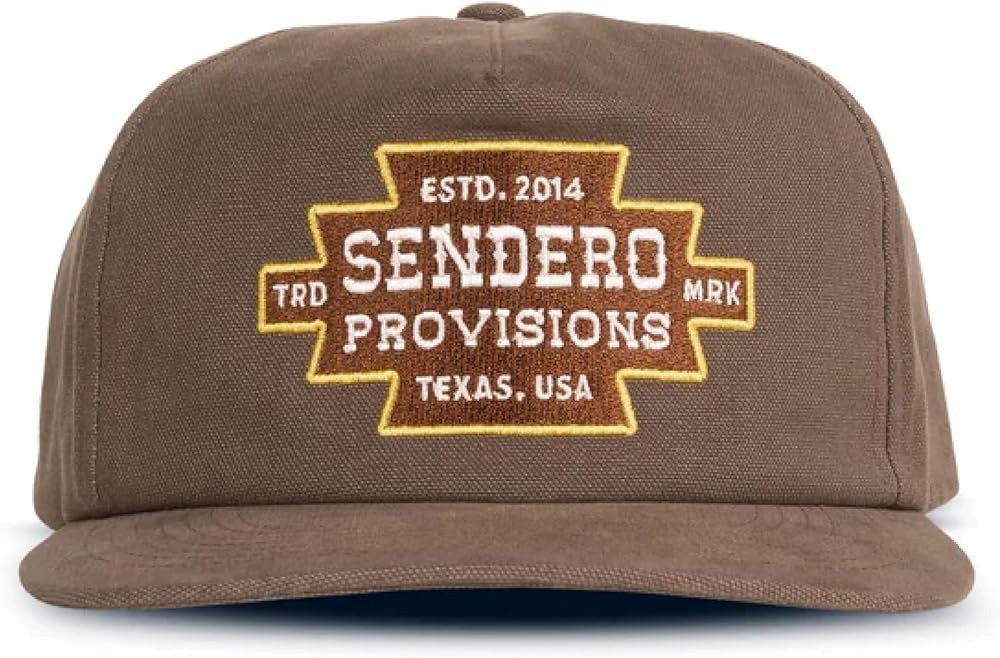 Sendero Provisions Co. SPCH124S25AZZ Presidio Hat Brown Unstructured 5-Panel Unisex Brushed Canvas Embroidered Patch Pop-Up Mesh Snapback HatDescription: This hat's namesake is about as far South and West as you can make it in Tejas. While Presidio has a rich and storied history - pueblos, Spaniards, wars, cattle drives, railroads - it, sadly, does not not have an Allsups. So if you're off to Big Bend Ranch State Park or Marfa for some Western adventure, gonna have to get your "Chimi" fill in Fort Stockton.Key Features: • A Name You Can Trust: We've been doing this a while now. We made our first product back in 2014 and we've been making everything better ever since. We craft each product individually and care goes into every detail. • Only High Quality Materials: We hand select every fabric, trim, thread, and color that goes into a Sendero product. We don't use blanks- we've developed our own style and unique fits that folks have come to know and expect. • Designs That Inspire: We're not trying to put “Sendero” in as many different ways as we can onto our gear. We do that sometimes, but what gets us excited is funky cool art with a Western twist and maybe a silly joke or two. • Carefully Crafted: Our hat showcases an embroidered Presidio patch, adding a distinctive touch to your outdoor style. With its eye-catching brown and convenient snapback closure, this hat ensures a comfortable and personalized fit for your adventures.Pack Includes: (1) Sendero Provisions Co. Presidio Snapback Hat