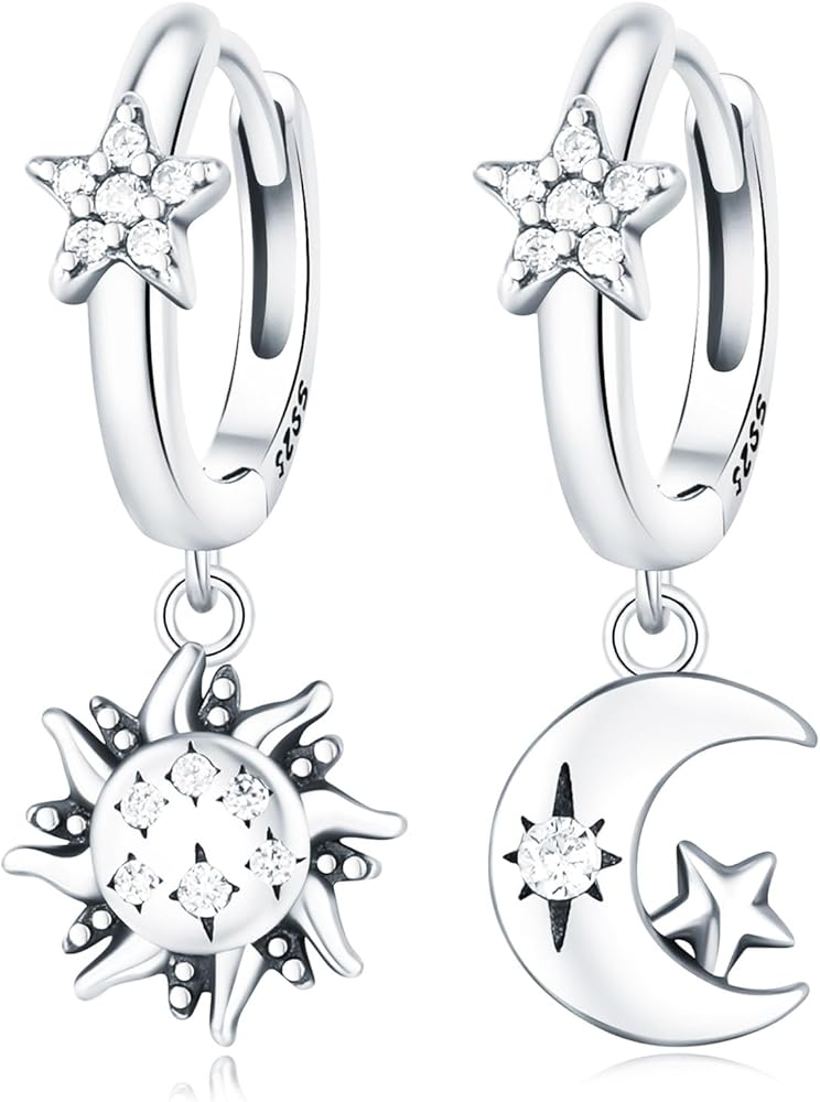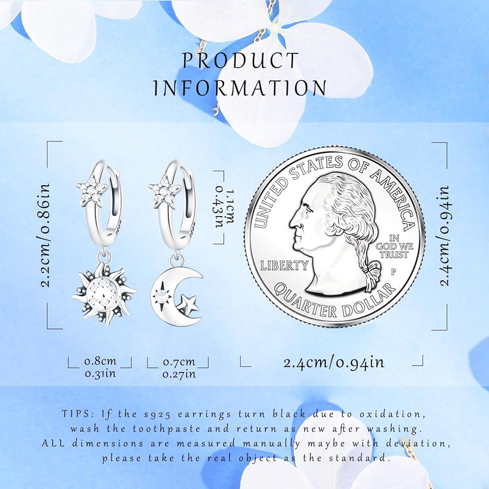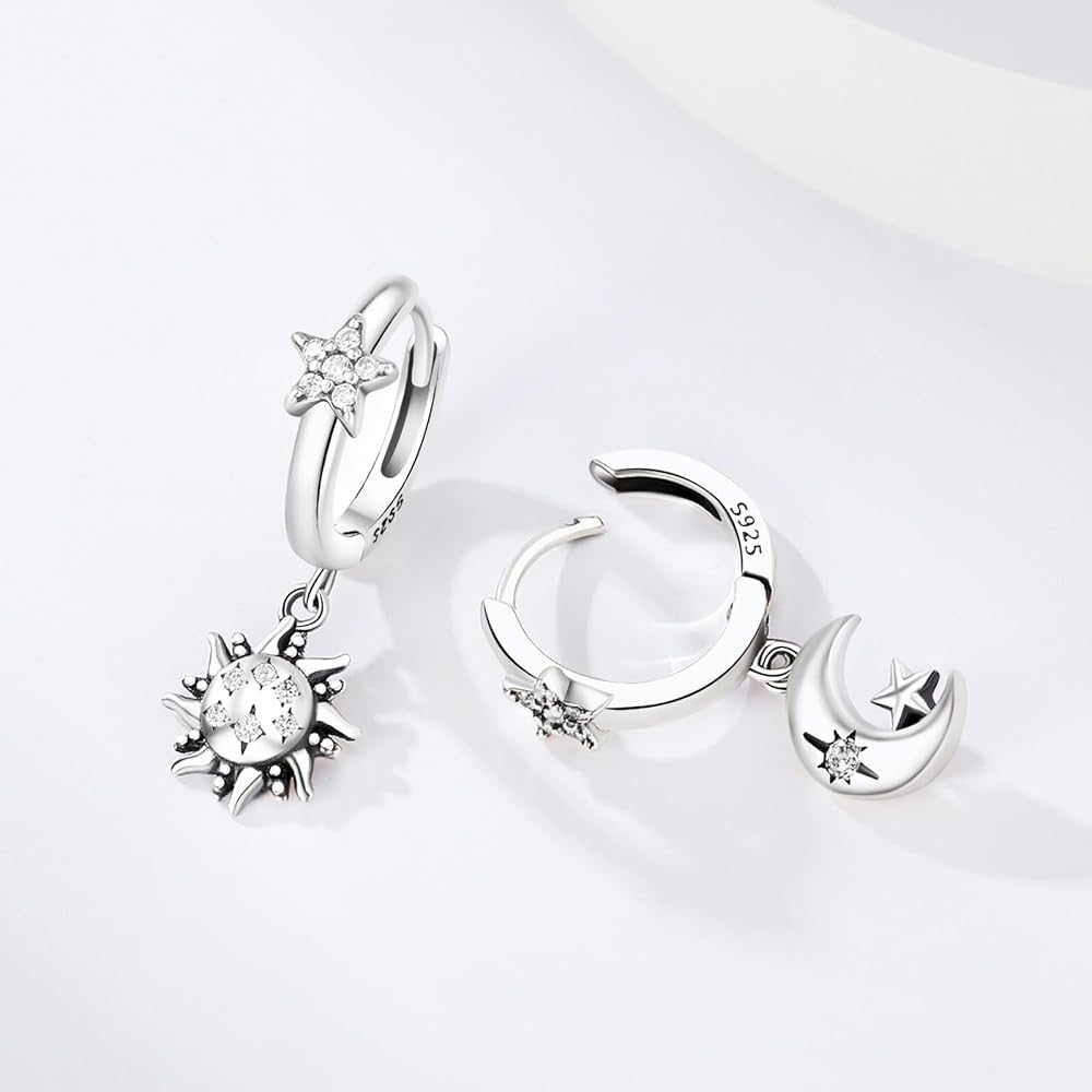 Earrings for Women Trendy, 925 Sterling Silver Earring Jewelry, Fashion Small Hoop Blue Star Moon Sun Drop Dangle Retro Graduation Birthday Gifts for Girls Teen