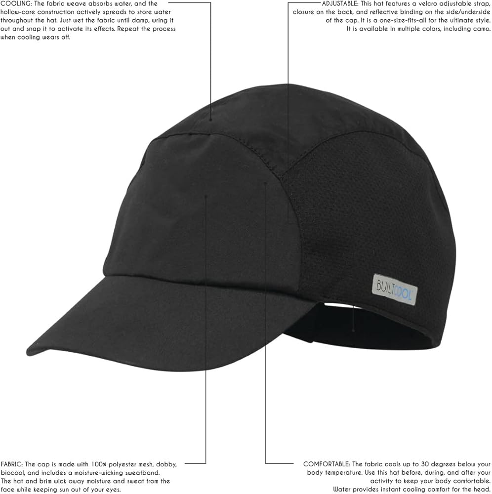COOLING: The fabric weave absorbs water, and the hollow-core construction actively spreads to store water throughout the hat. Just wet the fabric until damp, wring it out and snap it to activate its effects. Repeat the process when cooling wears off.