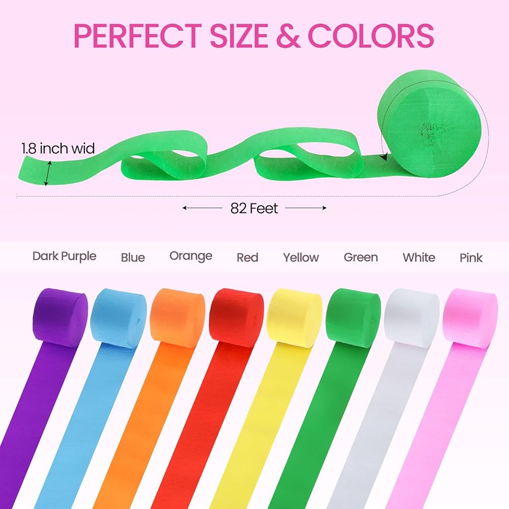 • Generous Size: each crepe paper streamer measures about 1.77 inch in width and 82 feet in length, ensuring you have plenty of decors to deck out your venue; Whether for a small birthday bash or a large community event, our streamers can cover it