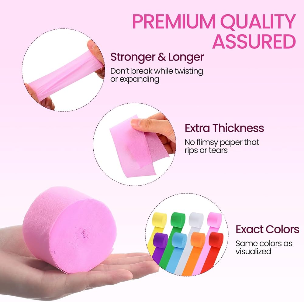 • High Quantity Value: included in your package are 48 individual crepe paper streamers in 8 colors, 6 pieces for each color, offering you considerable value for your paying; This quantity allows you to cover large areas or split the decor over multiple events effortlessly
