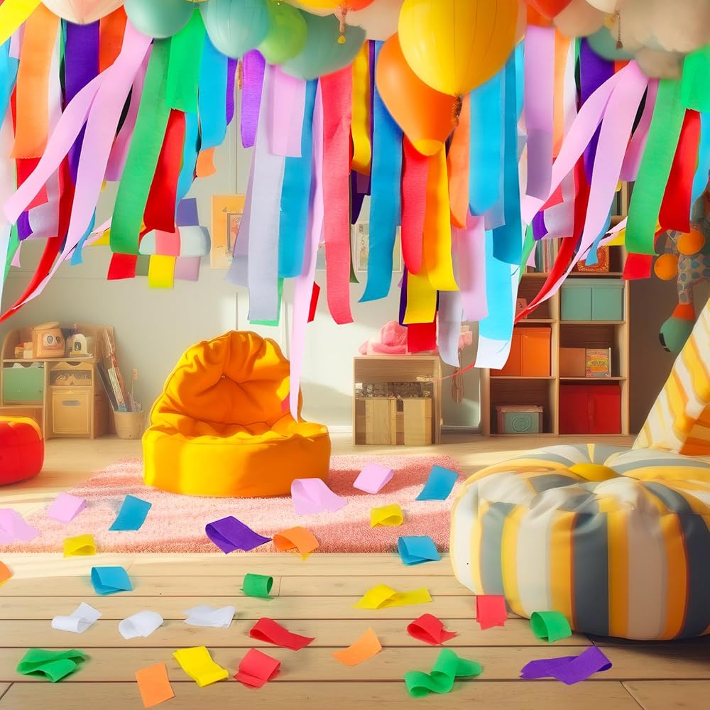 These rainbow crepe paper is incredibly easy to use. It can be attached to ceilings, walls, doorways, or applied as balloon tails. Its potential placement is only limited by your creativity, making party decorating an enjoyable experience.