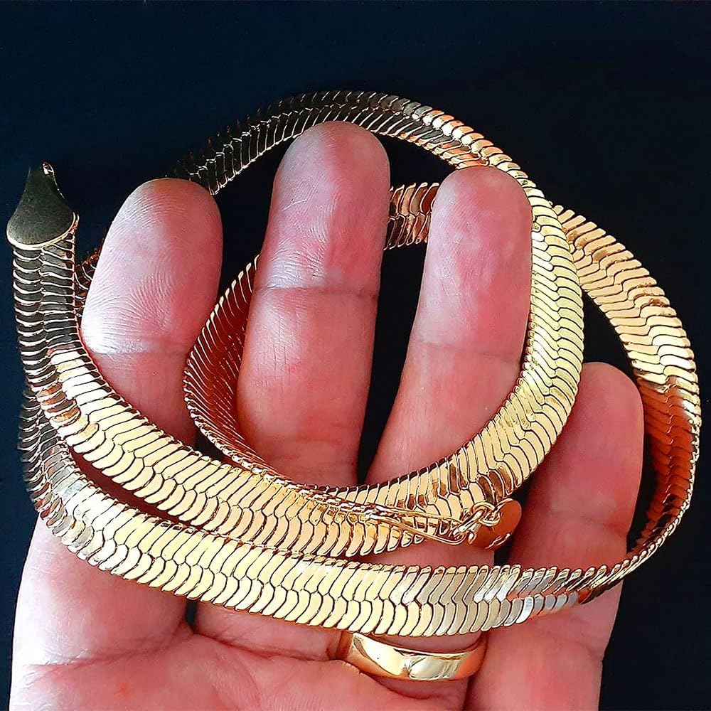This sparkling 18K gold flat snake chain is a perfect gift - elegant, eye catching. even a TRAINED JEWELLER will struggle to tell if it is fake or not!