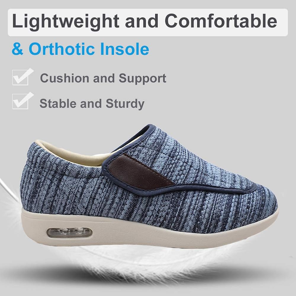 These extra-wide slippers feature unique Velcro tabs for adjustable comfort perfect for tired, swollen feet and better stability.