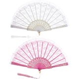 2 Packs elegant flower rose lace handheld fans with tassels to match your styles.