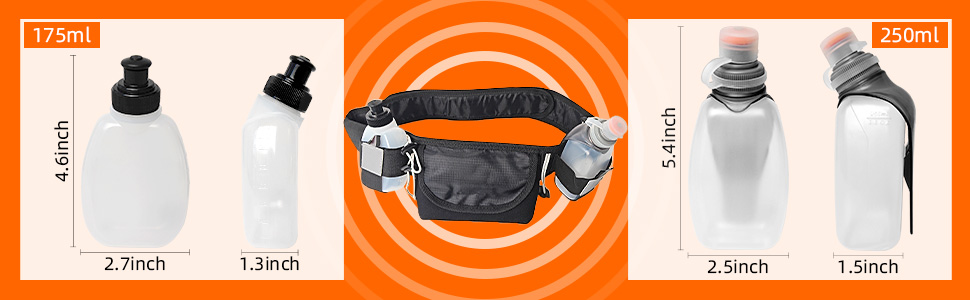 - Sports Water Bottle Capacity: one 175 ml/6 oz, another 250 ml/8 oz, can meet your different needs