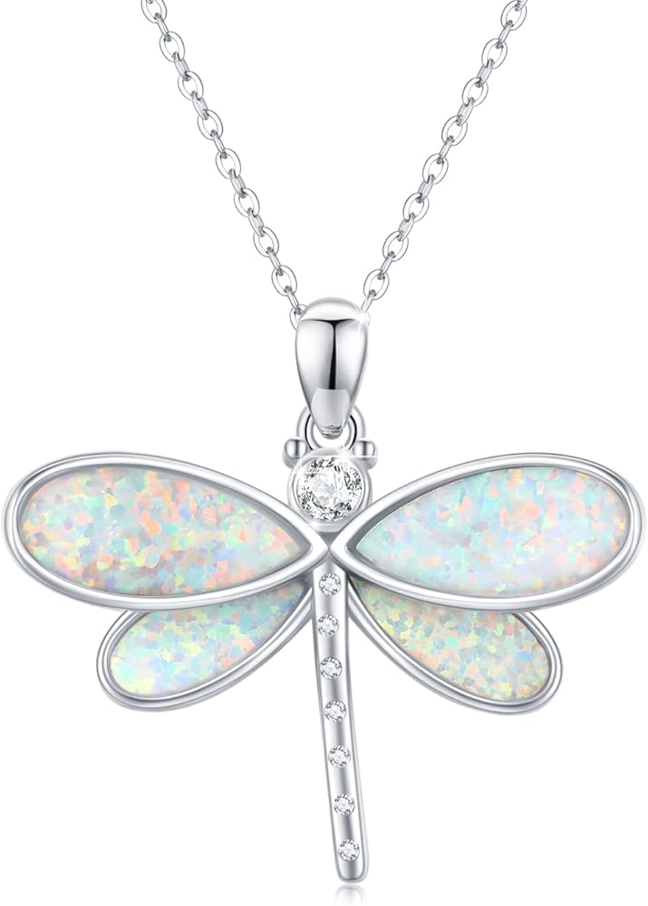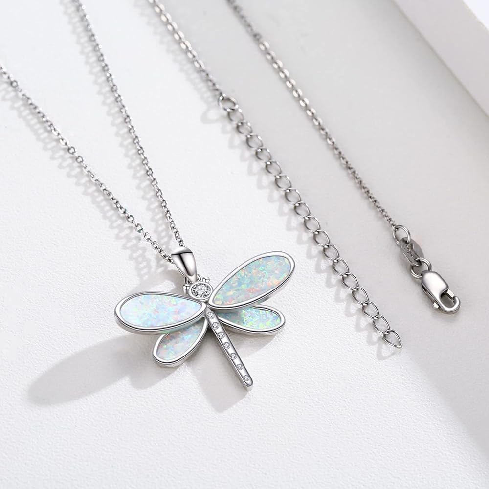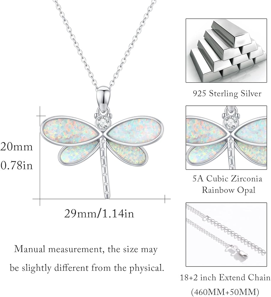 [Dragonfly pendant size]------1.18 inches/30mm, with 18"+2" adjustable rolo chain. Opal dragonfly pendant 3.37g, sterling silver chain 1.7g. Comes with an exquisite jewelry box. Perfect for everyday wear, suitable for all ages and all occasions.
